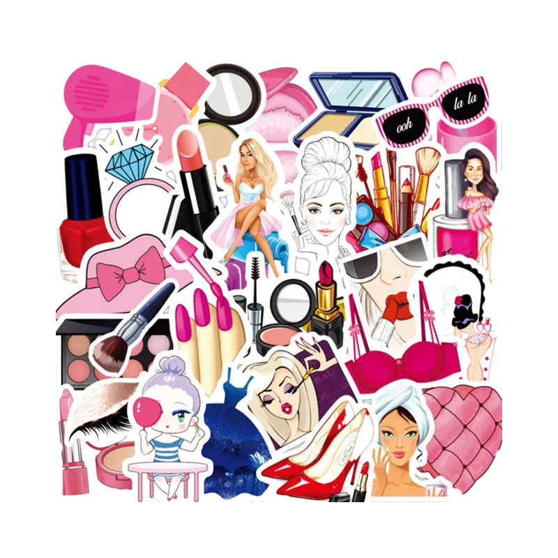 Набор для макияжа розовых девушек, 103050 шт., помада, духи, мотоциклетная Водонепроницаемая тележка, чехол, наклейка, украшение для игрушек, оптовая продажа