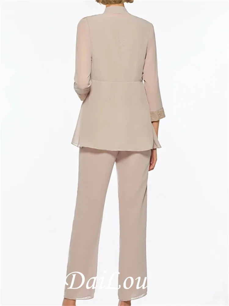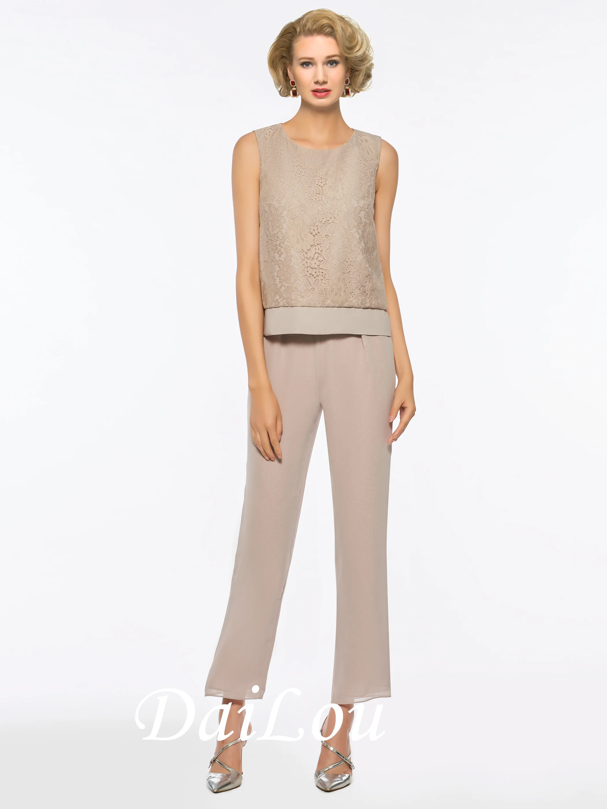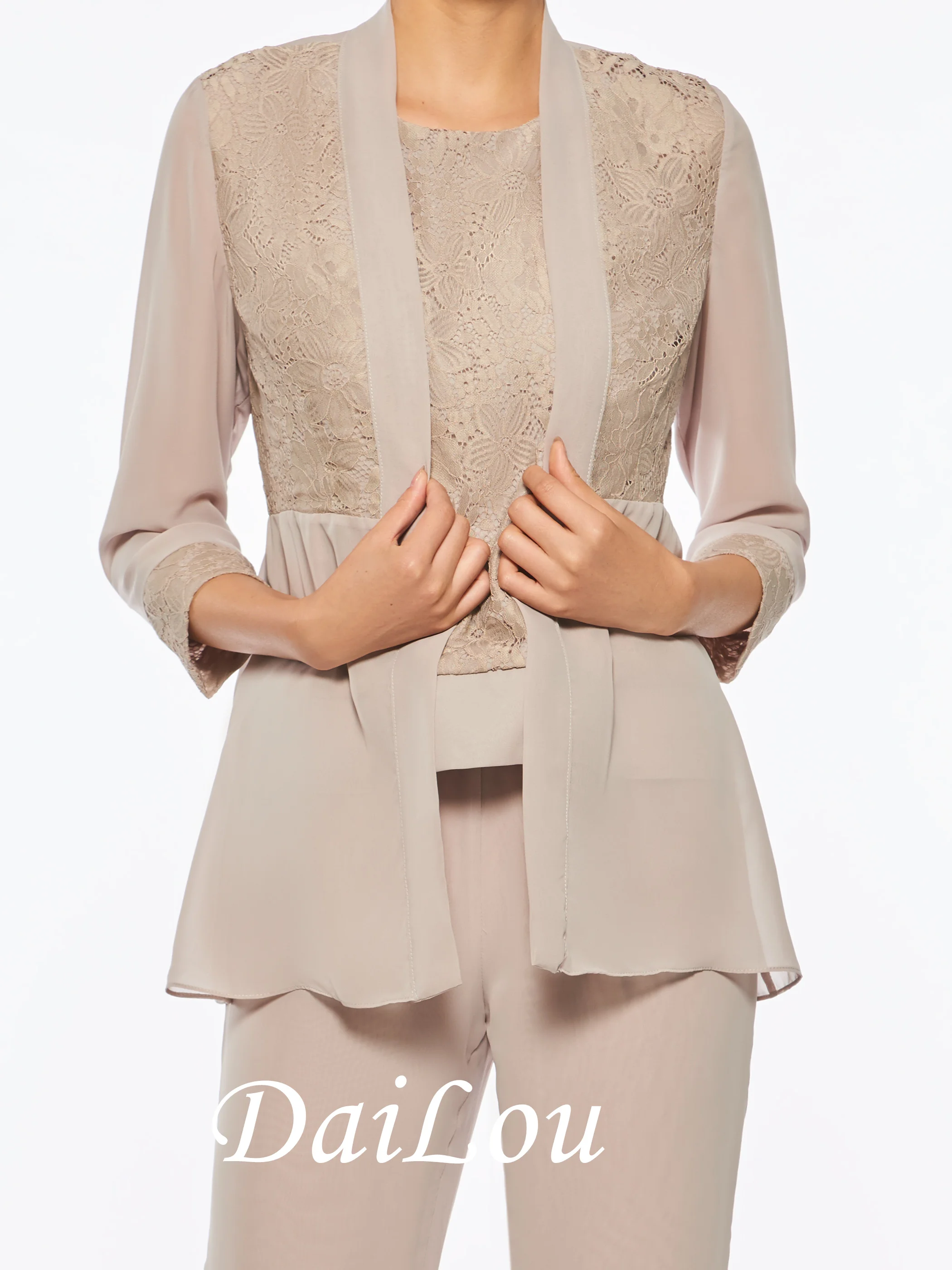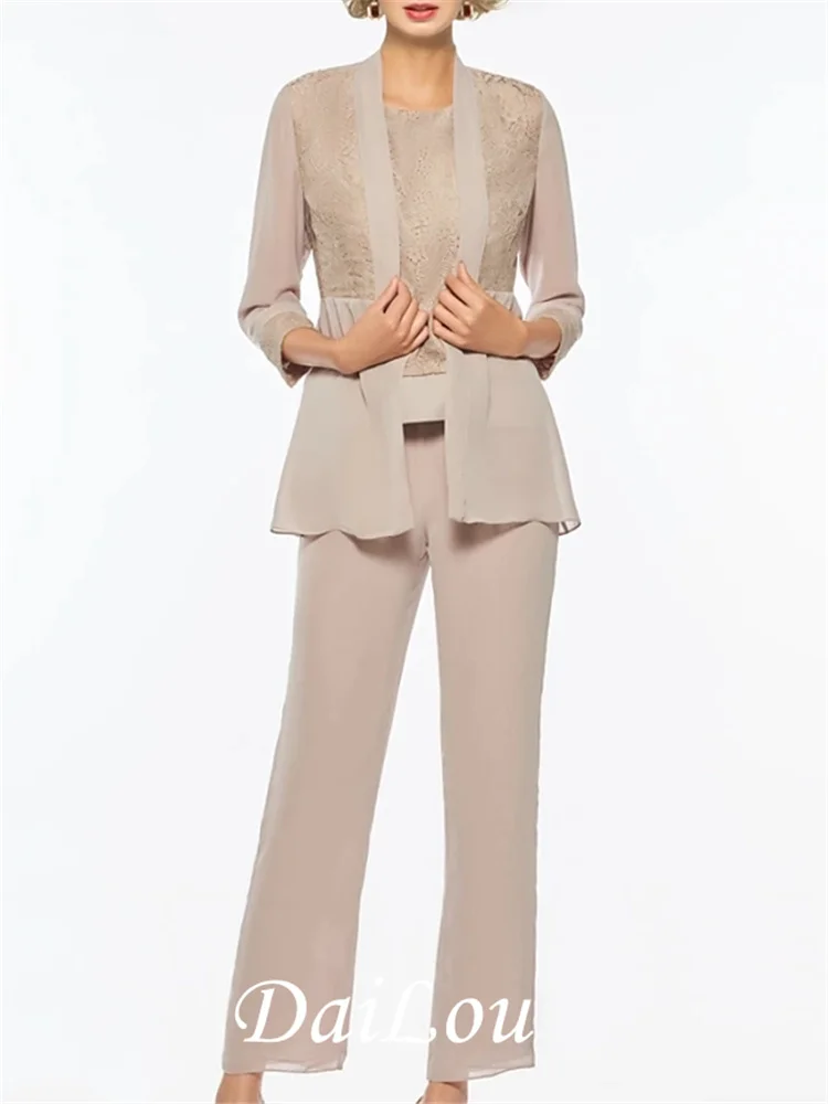 Костюм-брючныйкомбинезон для матери невесты, элегантное шифоновое кружевное платье до пола с круглым вырезом, рукавом 34 и вышивкой, 2021