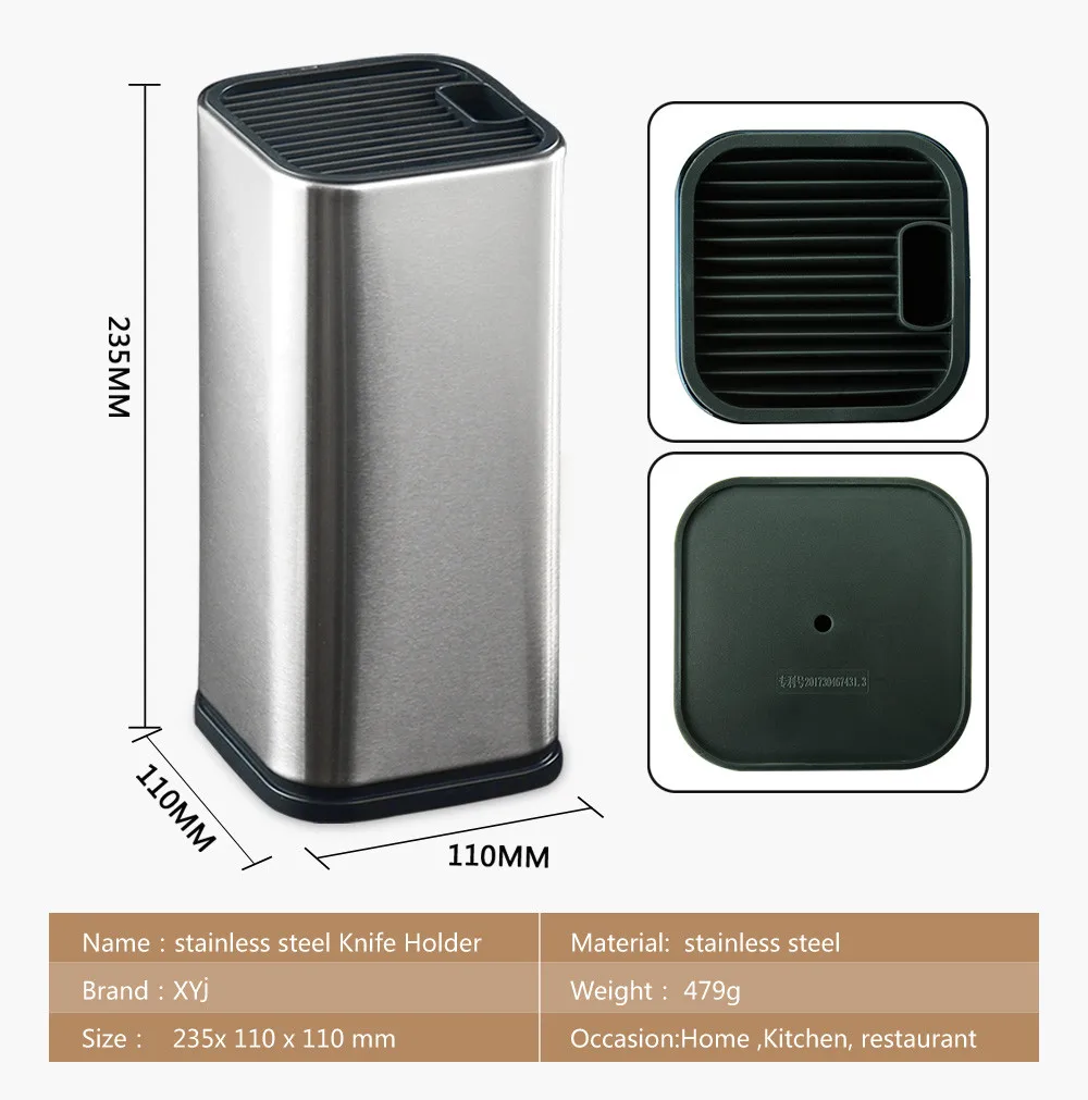 Посылка включает в себя:1 * держатель ножа (ножи в комплект не входят)Особенности:Мощный и компактный. Экономьте ценное пространство при приготовлении пищи и оставьте дополнительное пространство для кухонной утвари и столовых приборов. Параллельные канавки отделяют лезвия так, чтобы инструменты не трогали друг друга. Нет риска повреждения лезвий в блоке.В нижней части держателя инструмента имеется сливное отверстие. Это помогает сливать после мытья ножа. Просто протрите поверхность из нержавеющей стали или резиновую подкладку, чтобы сиденье было чистым.Держатель инструмента подходит для большинства инструментов. Такие как кухонные ножи, ножи для хлеба, кухонные ножи, ломтиковые ножи, ножи для стейков и т. д.Нижняя часть Держателя Ножа тяжелее для предотвращения опрокидывания и скольжения ножа. Прочный и устойчивый.