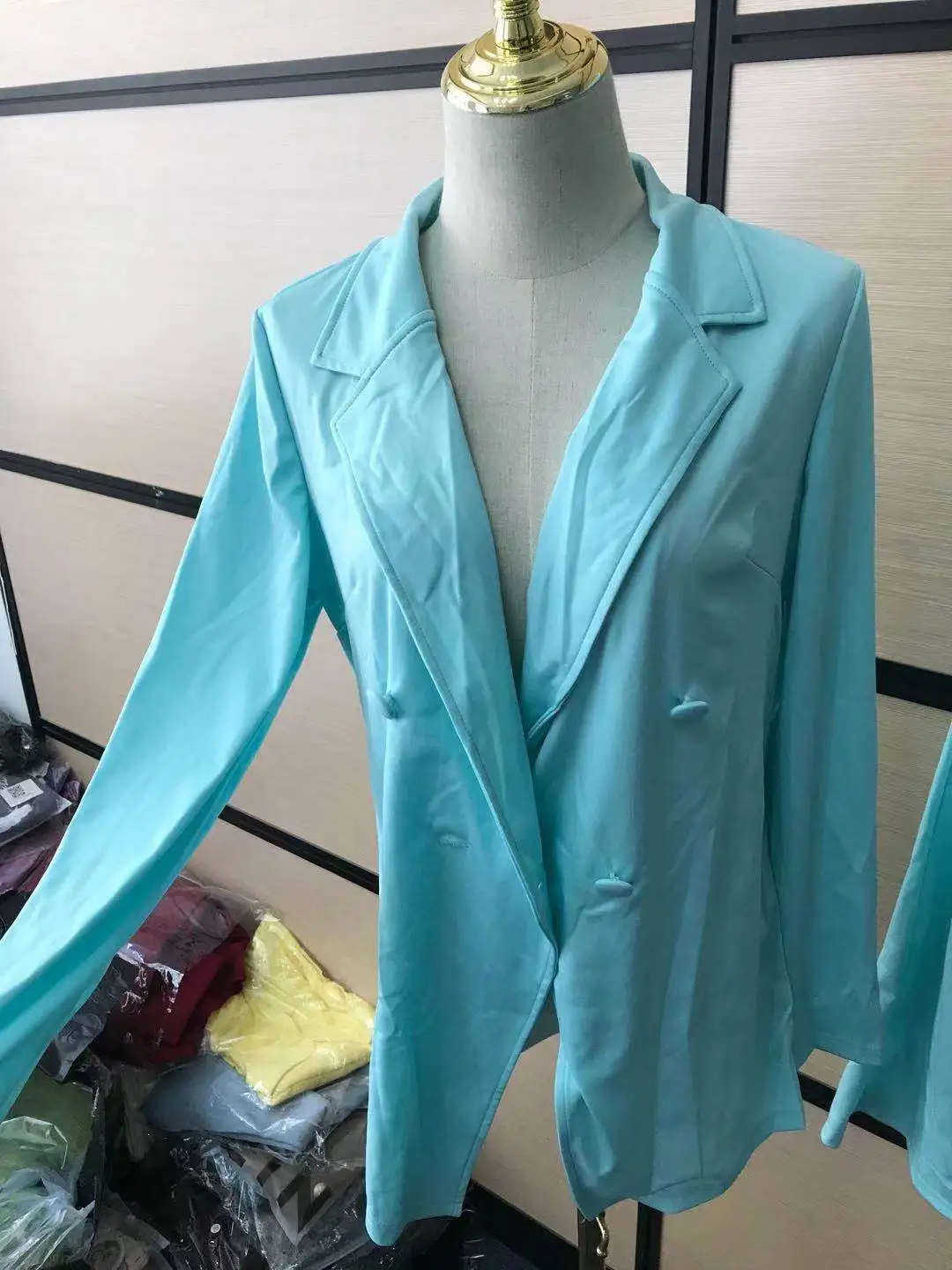 Костюм-двойка Женский Повседневный, Классический офисный Блейзер, однотонный модный офисный пиджак с эластичными лентами и брюки, офисный костюм