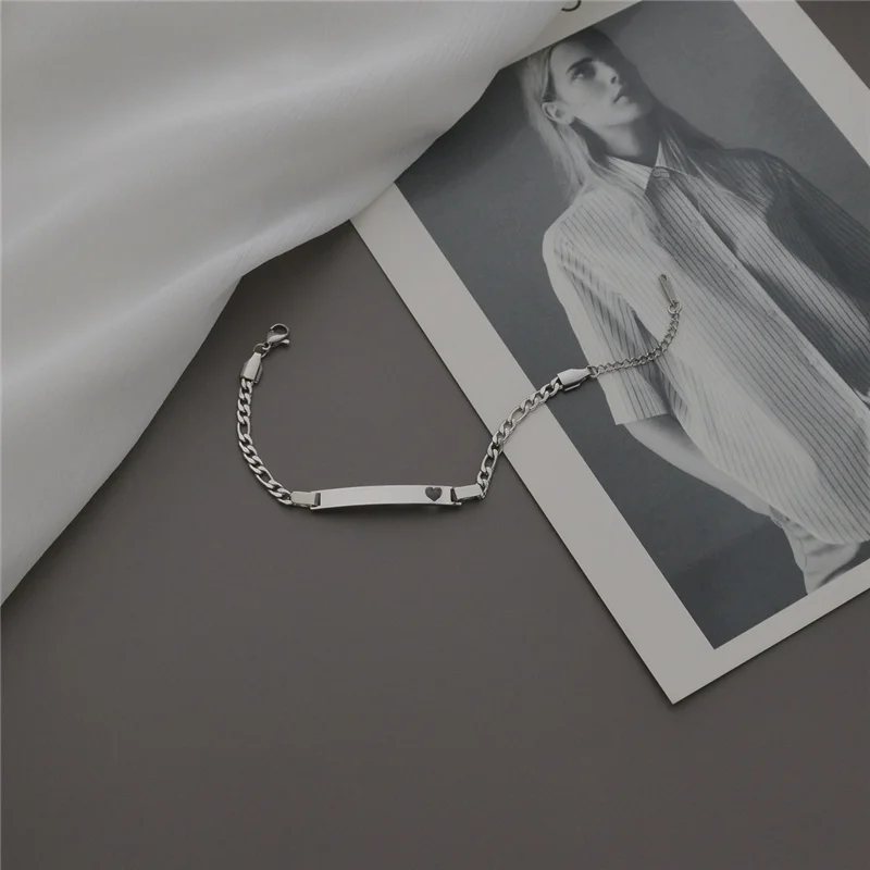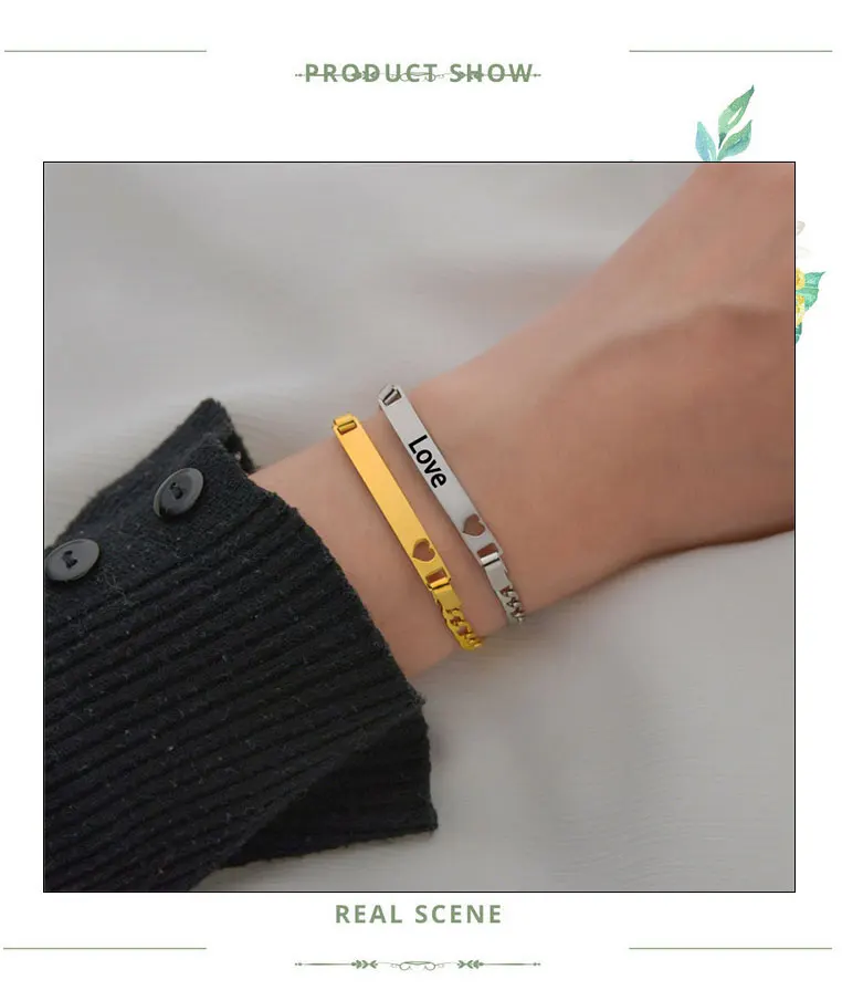 Персонализированный гравировка слов выбитое сердечко бар Браслеты нержавеющей стали для Для женщин мужчин Дата фамилия выгравированы пару подарки