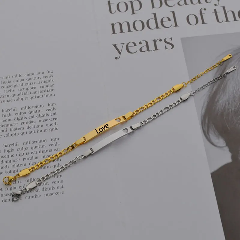 Браслеты из нержавеющей стали с гравировкой, персонализированные украшения с надписями, полыми сердечками, для мужчин и женщин, с датой и именем, подарки для пар
