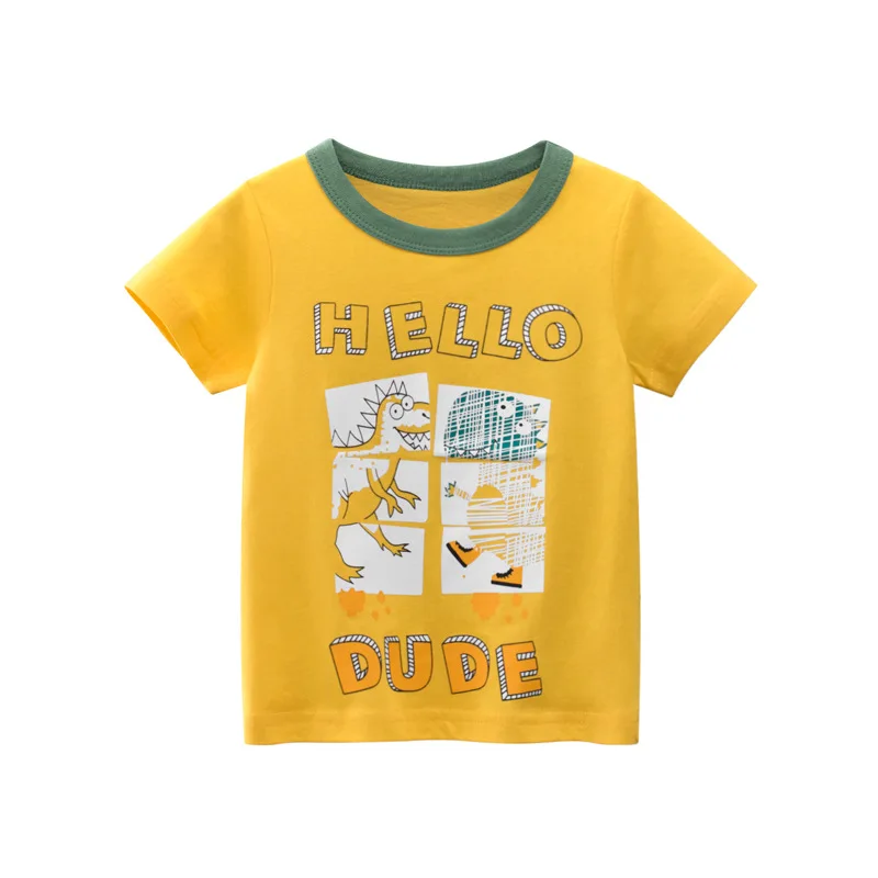 Хлопковая футболка для мальчиков и девочек, с мультяшным динозавром, лето 2021