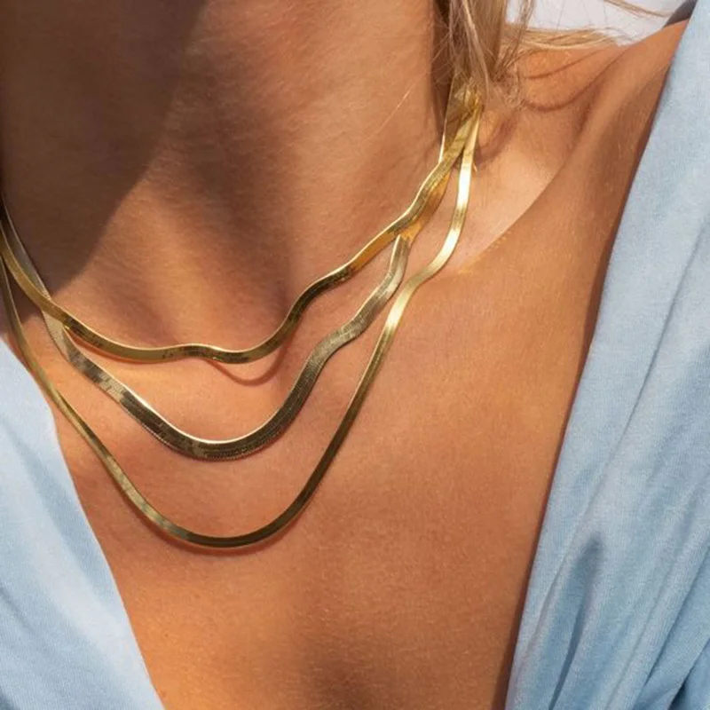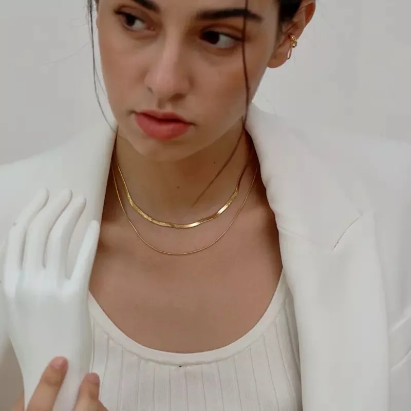 Колье на шею, из нержавеющей стали, с плоскими звеньями в елочку, элегантная Минималистичная цепочка на шею, Женская цепочка в виде змеи