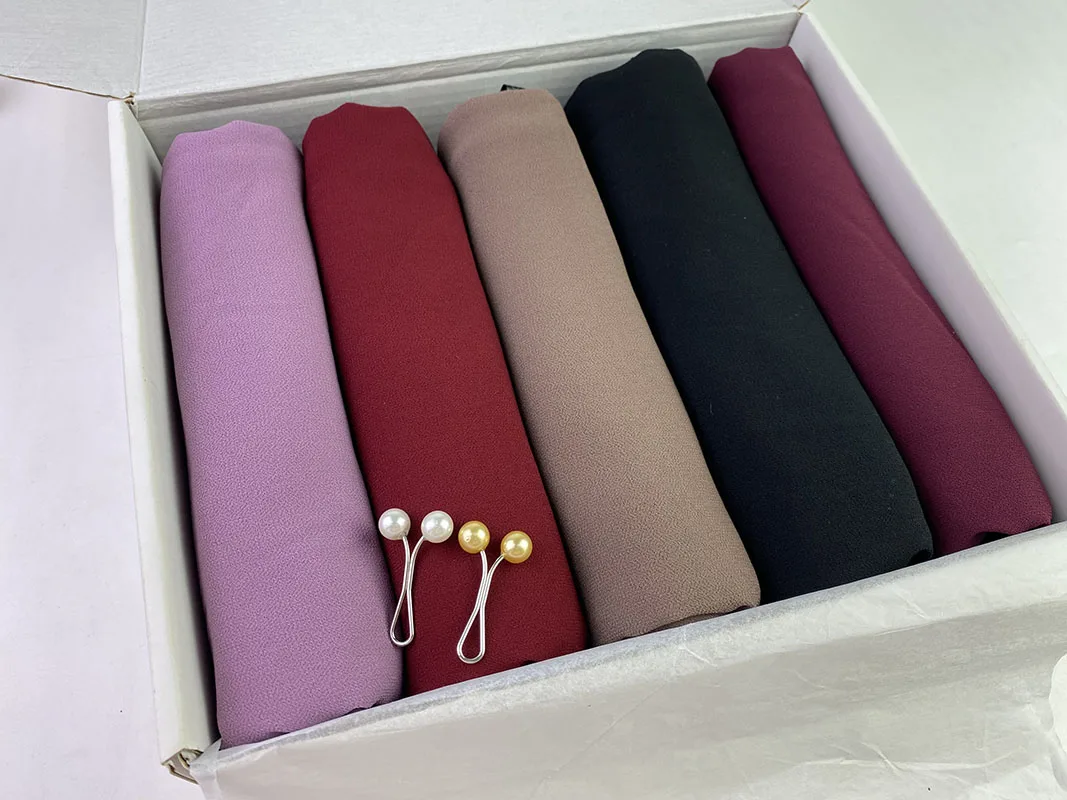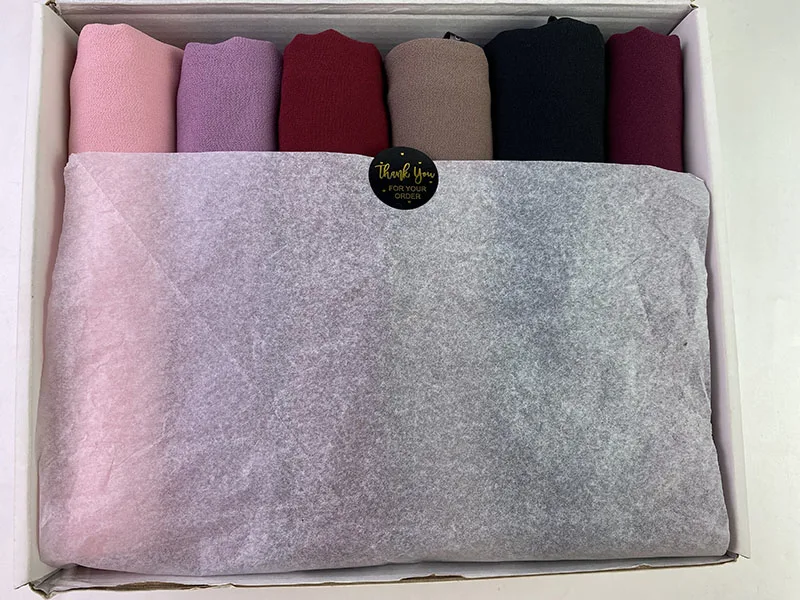 6 шт.кор. большой шифон хиджаб шарф Обёрточная бумага одноцветные шали повязка на голову мусульманские хиджабы в полоску с подарочной коробкой платок платки Femme