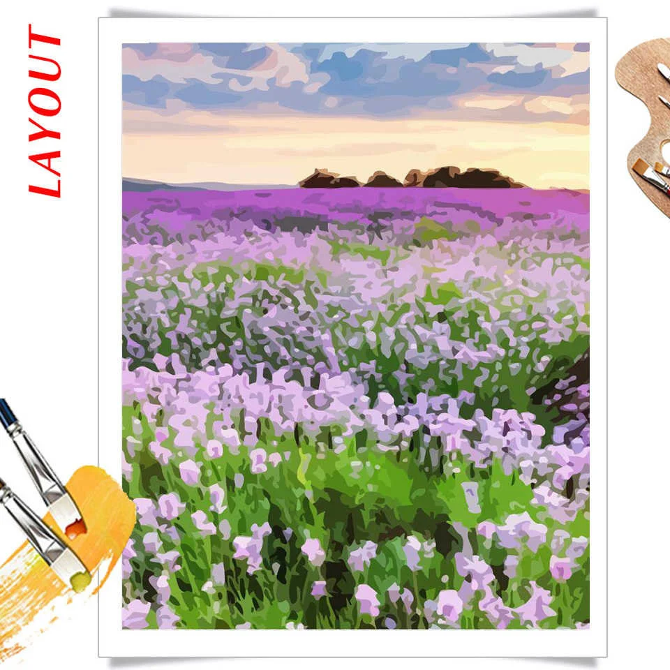 AZQSD Diy кадр Краски ing бледно-лиловый рисунок на холсте Краски Раскраска по номерам цветочные наборы акриловые уникальные подарки