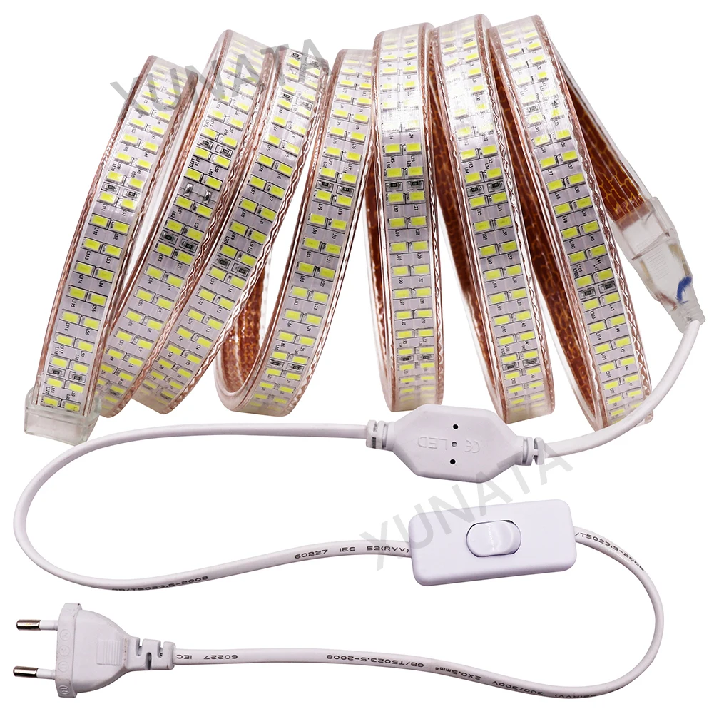 Супер яркая светодиодная лента 5730, двухрядная, 240 светодиодовм, гибкая Водонепроницаемая лента, белыйтеплый белый, 220 В, 110 В, вилка стандарта ЕС, США, Великобритании