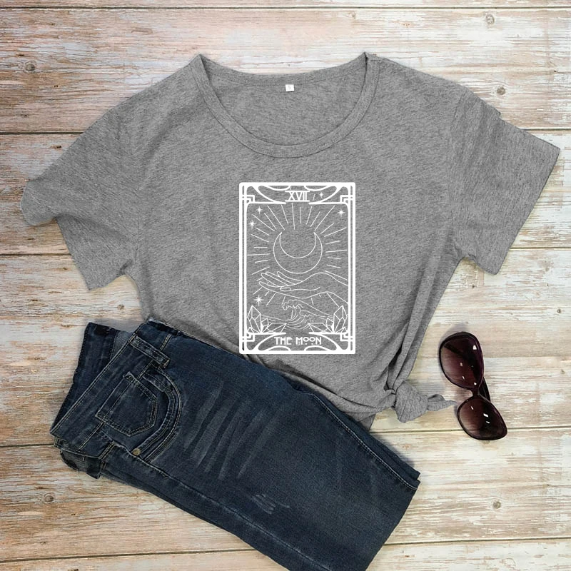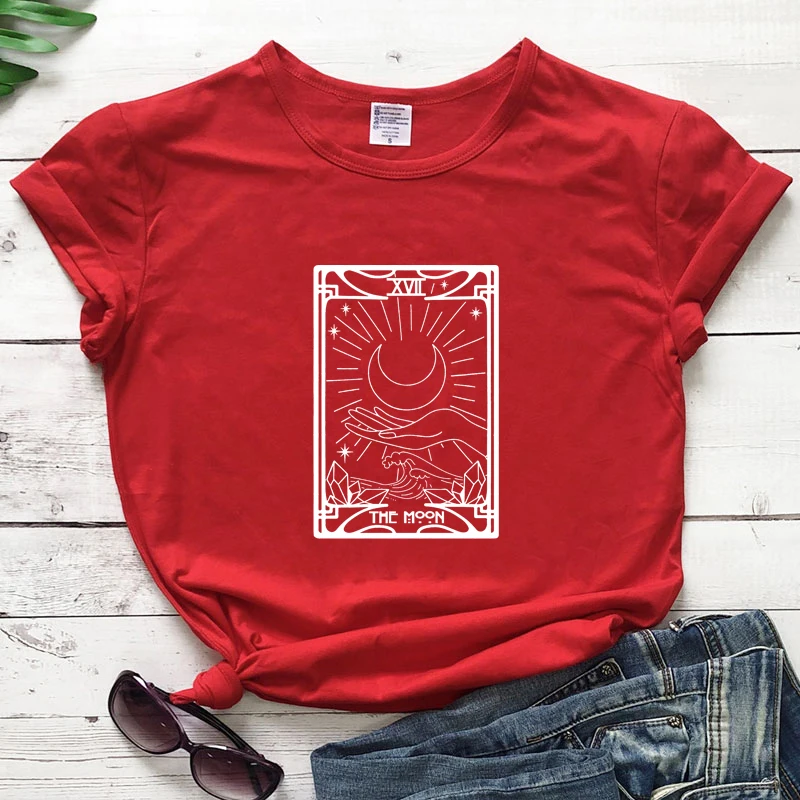 Футболка женская с принтом Луны и Таро, 100% хлопок