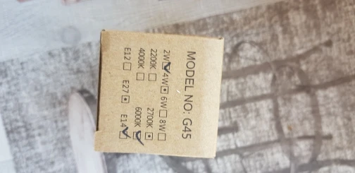 Страна: SG Emitting Color: G45 E27 Color: Warm white Number of LED Chip: 220V Wattage: 6W Support Dimmer: No Доставка: Standard Shipping 09.06.2021