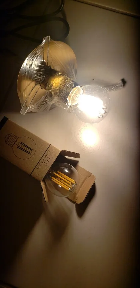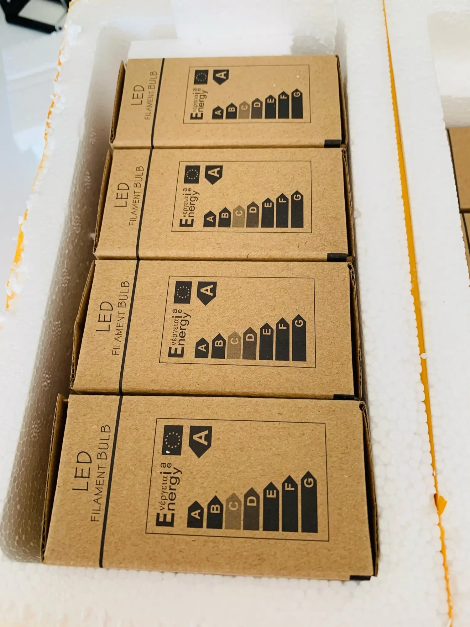 Я пробовал все лампы, они работают правильно. Идеальная упаковка в белой пробковой коробке. Пришло время поставить их на два потолочных светильника и наслаждаться светом, который они дают.