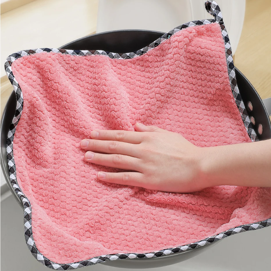 Салфетка для кухонной посуды из бархата кораллового цвета, быстросохнущая, антипригарная, моющаяся, 1 шт.