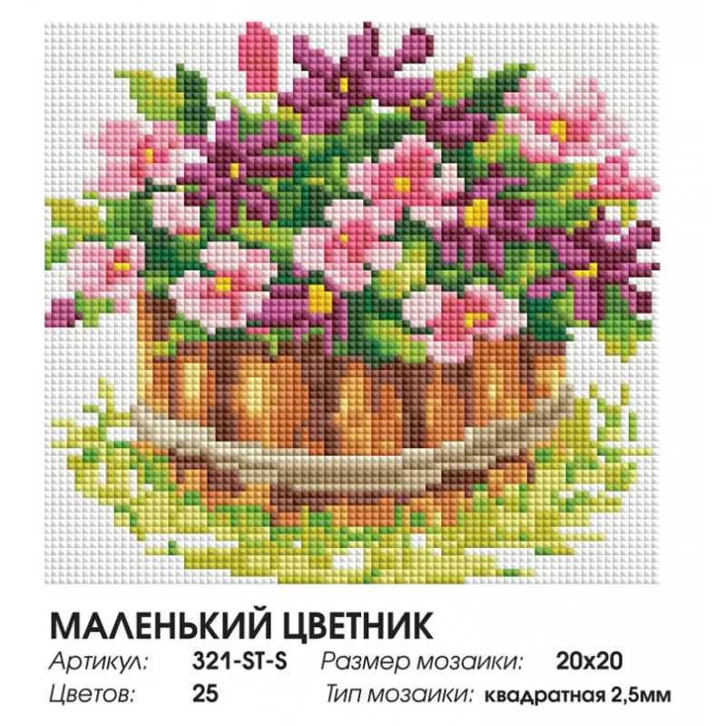 "Маленький цветник" Алмазная мозаика на подрамнике 20х20 см. Белоснежка. 321-ST-S