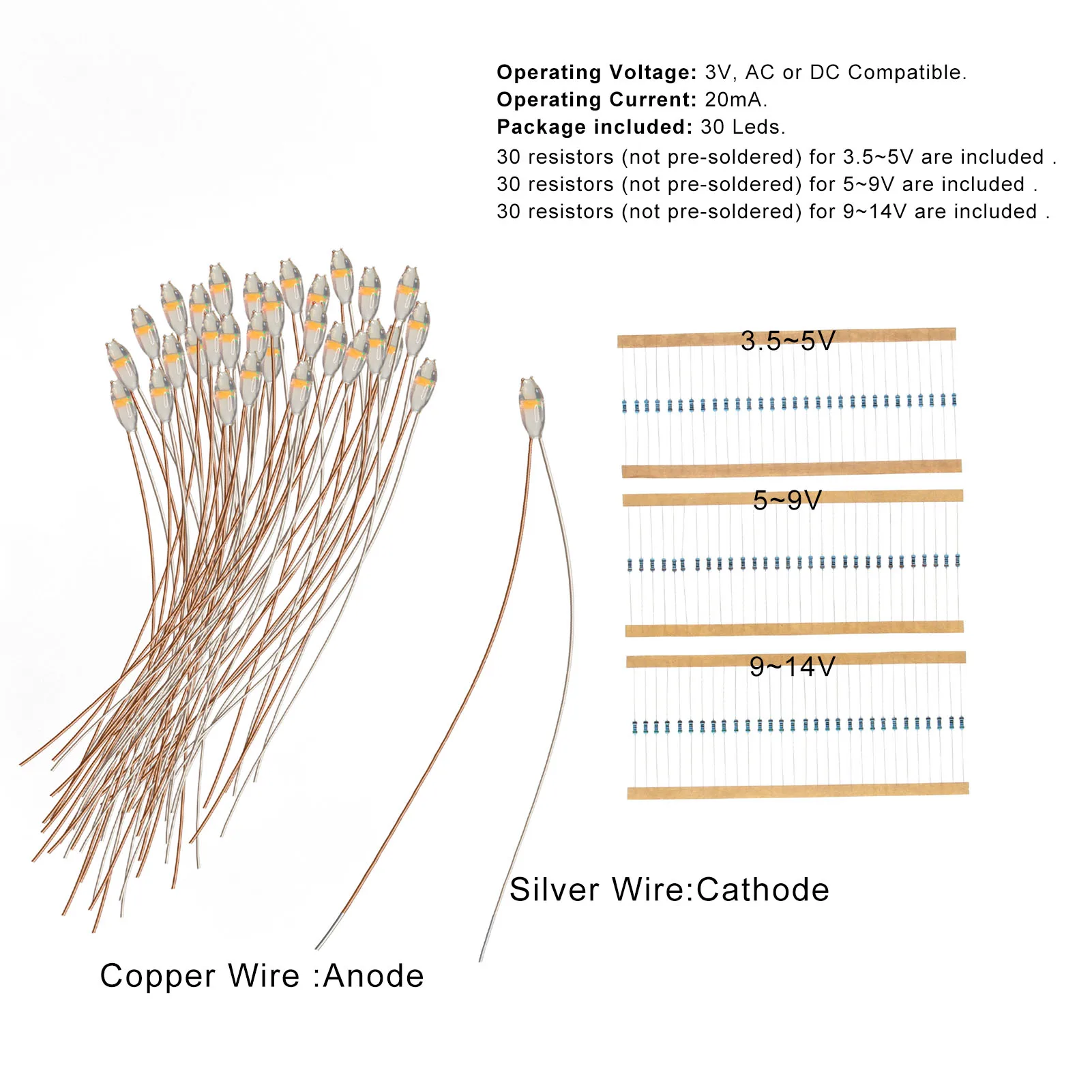 Резисторы 30 шт/60 шт (без предварительной спайки) для работы 5 ~ 9 В.
