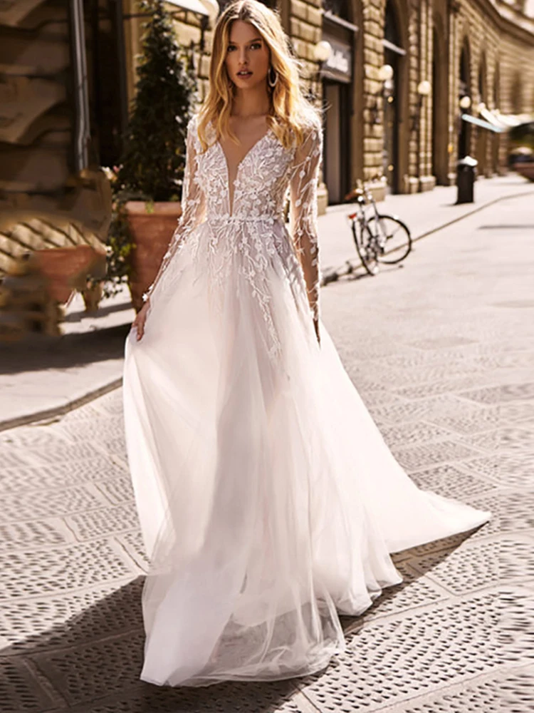Богемное свадебное платье с длинным рукавом, длинным рукавом