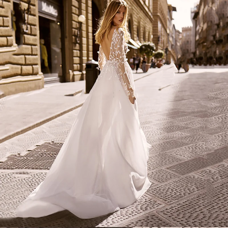 Элегантное сексуальное свадебное платье в стиле бохо с длинными рук...