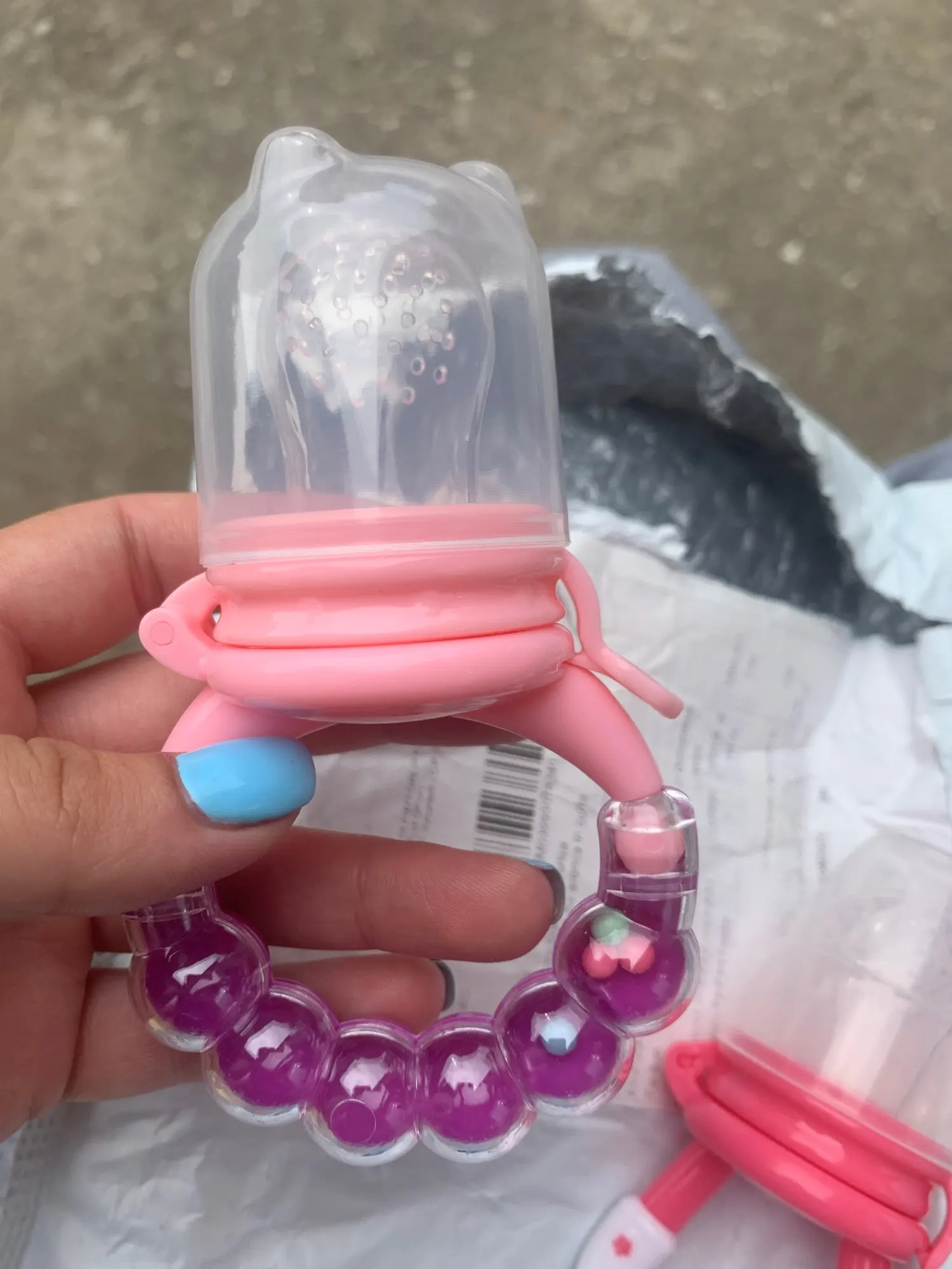 Заказ пришёл в течении 3 недель с Респ.Бурятию, всё точно по описанию. 3 размера сеточки начиная от маленькой до большой. Сеточка мягкая, с дырочками. На пуске ниблера есть шарики для звучания. Звук тихий, ненавязчивый. Ребёнок уже протестировал, понравилось очень! Я очень довольна заказом!