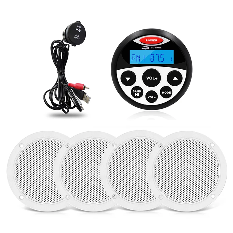 Морской радиоприемник, аудиосистема, стерео Bluetooth, приемник FM, AM, MP3, Автомобильный плеер, 2 пары 4-дюймовых водонепроницаемых динамиков, USB-кабель для лодки