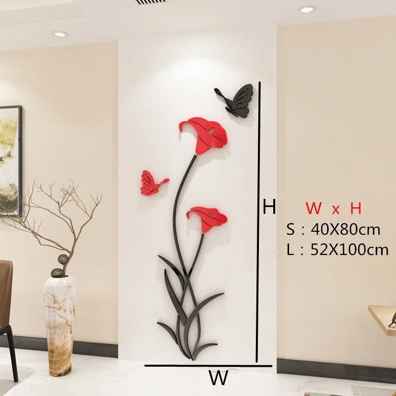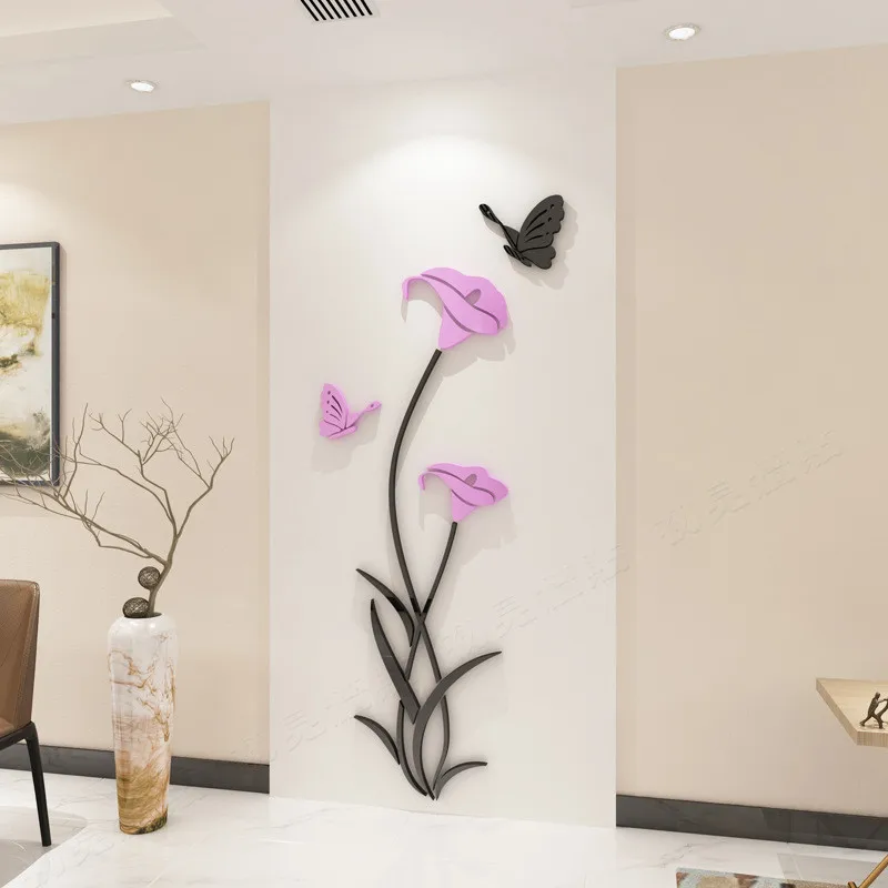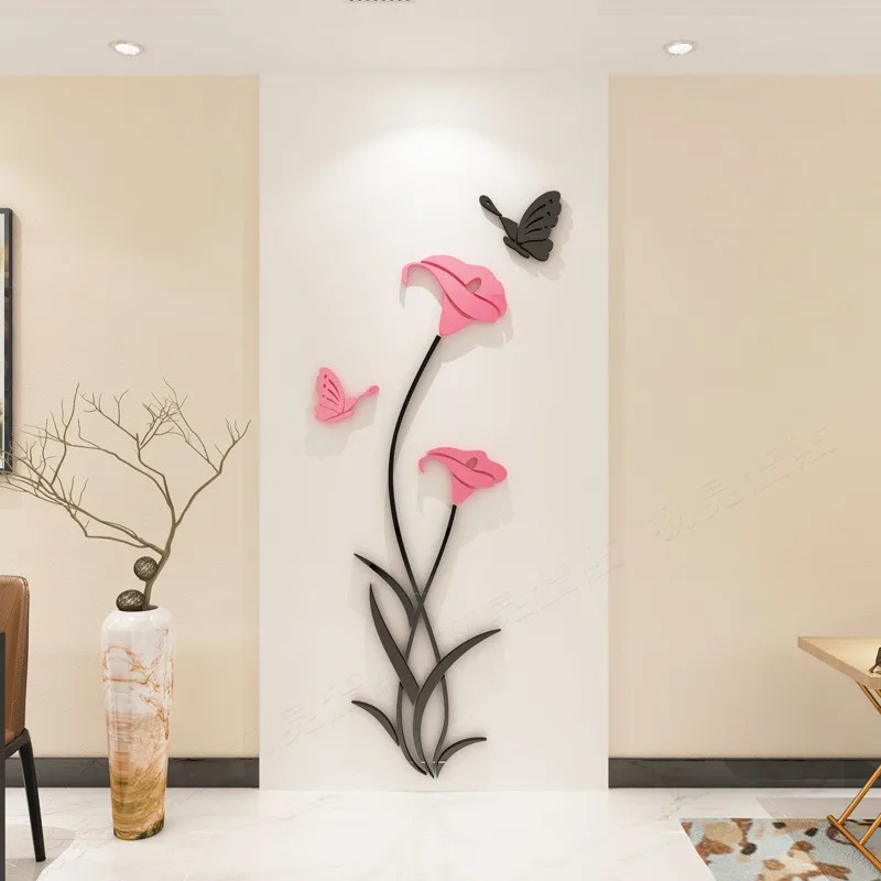Креативные Акриловые 3d наклейки на стену в гостиную с цветами, фоновое украшение на стену, с кристаллами, три объемный стикер