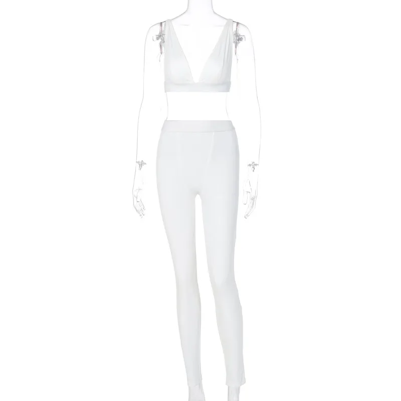Комплект для йоги, сексуальный комплект из 2 предметов, укороченный топ с V-образным вырезом и штаны, леггинсы, трикотажный повседневный костюм в рубчик, женский спортивный костюм для тренировок