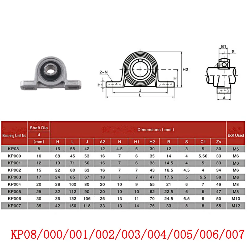 4 шт. KP08 KFL08 KPKFL подшипник, вертикальный сплав цинка, свинцовый винт, шарикоподшипник, опорный блок с креплением, диаметр 8 мм до 35 мм, отверстие