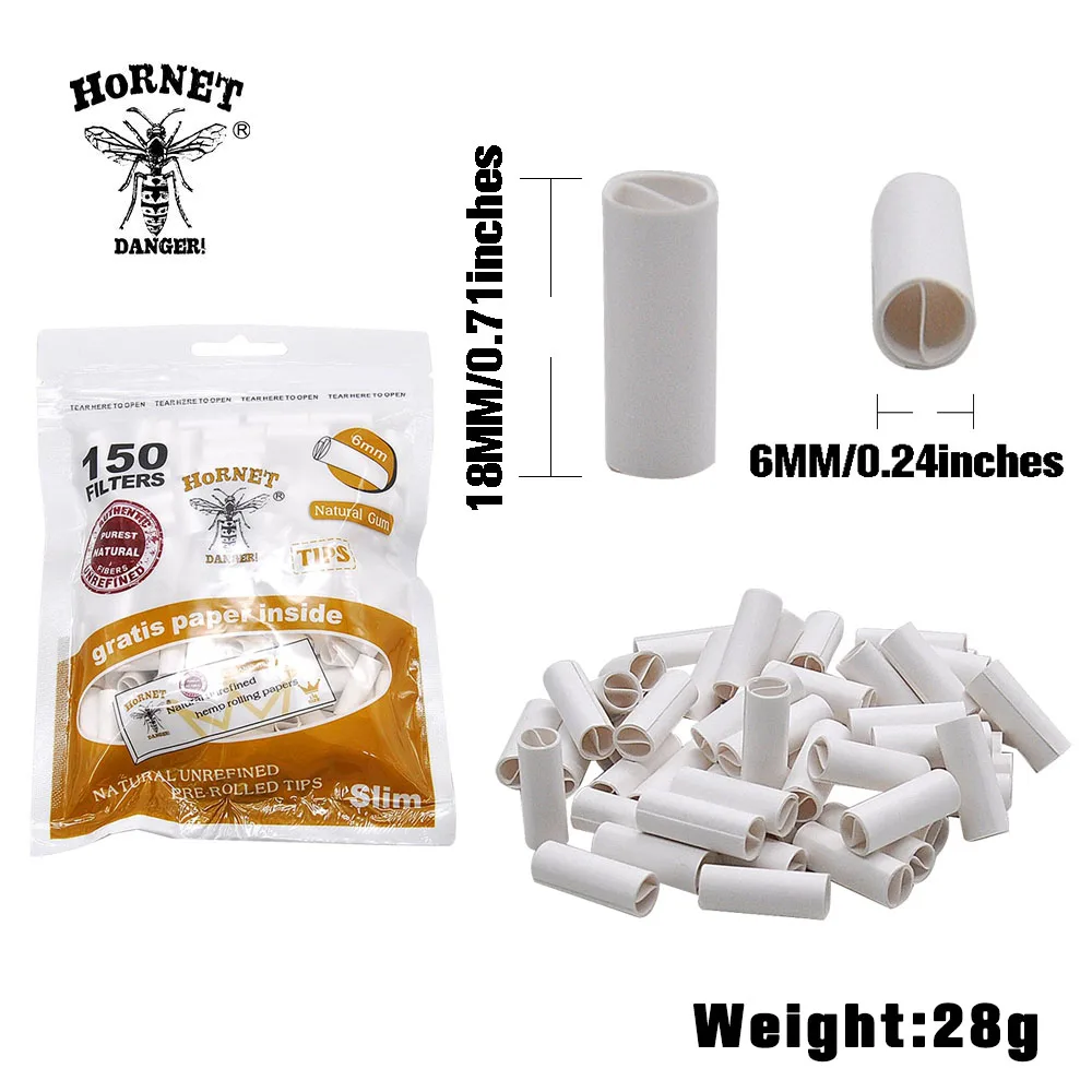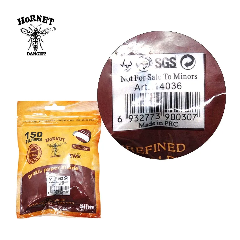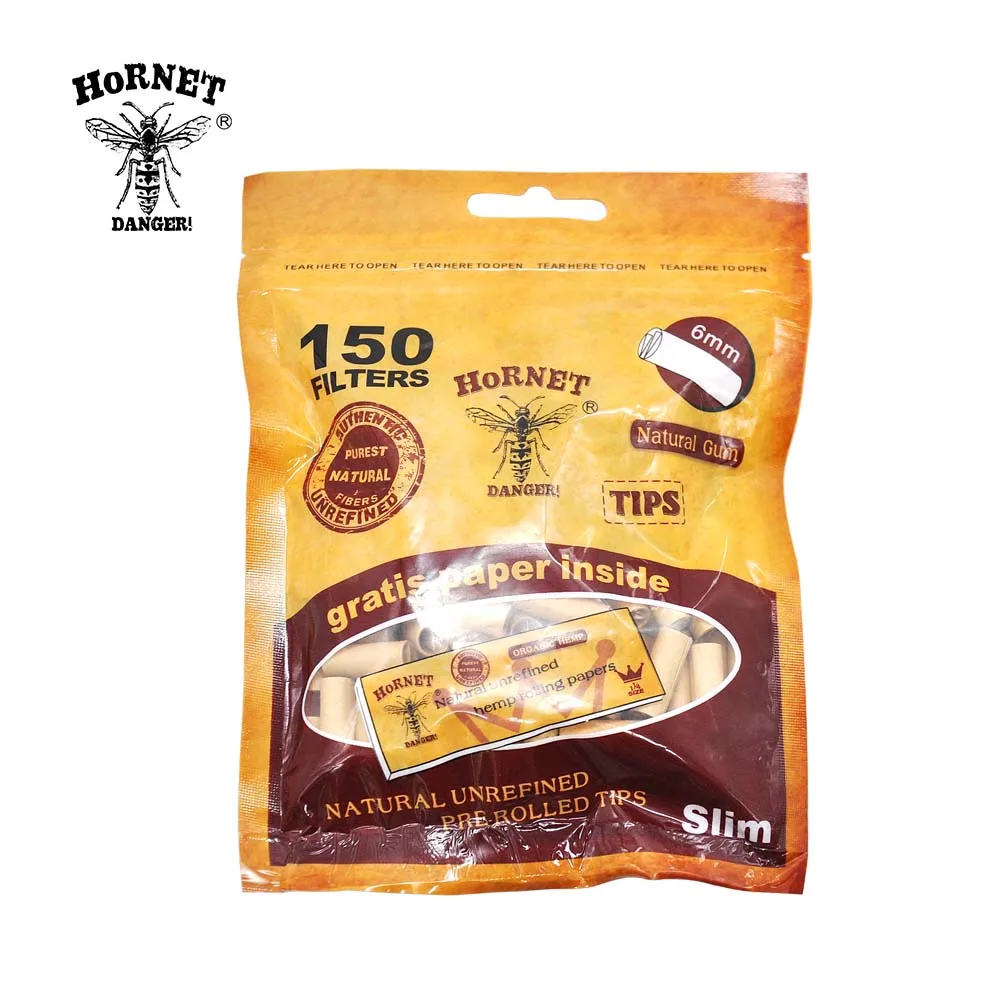 HORNET 150 шт. проката прокатки фильтр наконечники Бумага естественным резинки тонкий проката натуральное нерафинированное дыма сигареты фильтра прокатки советы