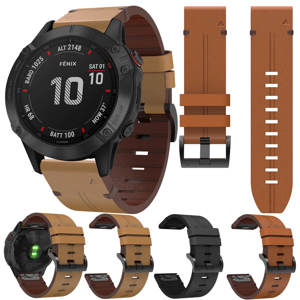 Ремешок из натуральной кожи для смарт-часов Garmin Fenix 6X 6X Pro, 26 мм, ремешок для часов Garmin Fenix 5X 5X Plus 3 3HR