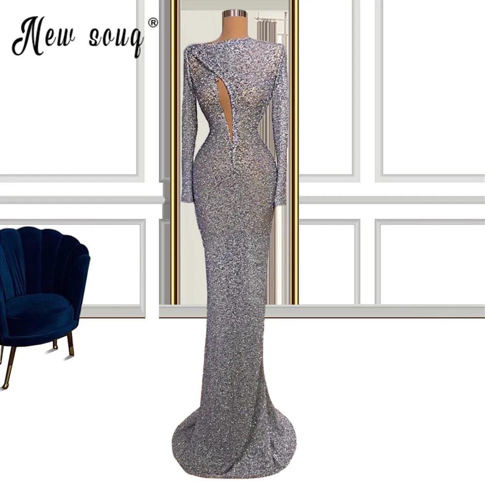 Мусульманские Серебристые вечерние платья Русалочки с блестками, Сексуальные Длинные Выпускные платья 2021, блестящие платья, реальные фотографии