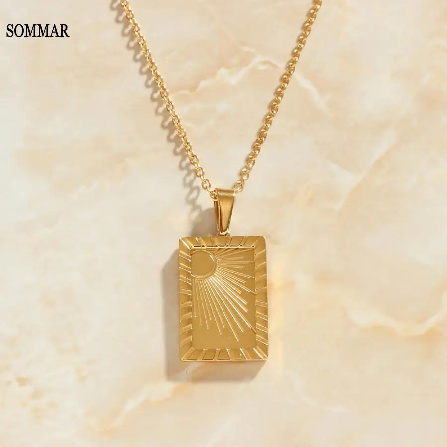 SOMMAR ins цвета: золотистый цвет девушка Ожерелья Подвески солнца, луны, квадраты Макси ожерелье очаровательные украшения, аксессуары