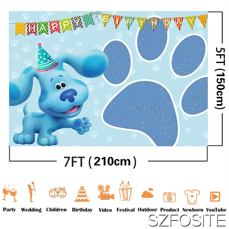 Фон для фотосъемки с изображением голубого щенка и розового будильника, фон для фотосессий-воздушный шар, вечеринка для мальчика день рождение