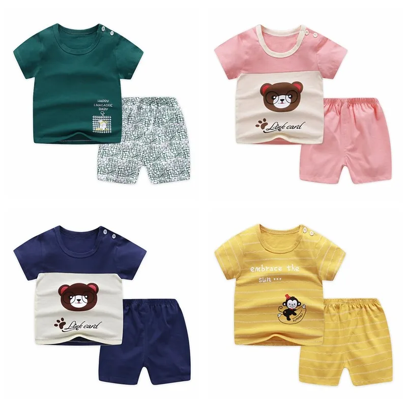 Детская одежда комплект из 2 предметов, футболка из 100% хлопка + шорты, летняя одежда для мальчиков и девочек, детская одежда