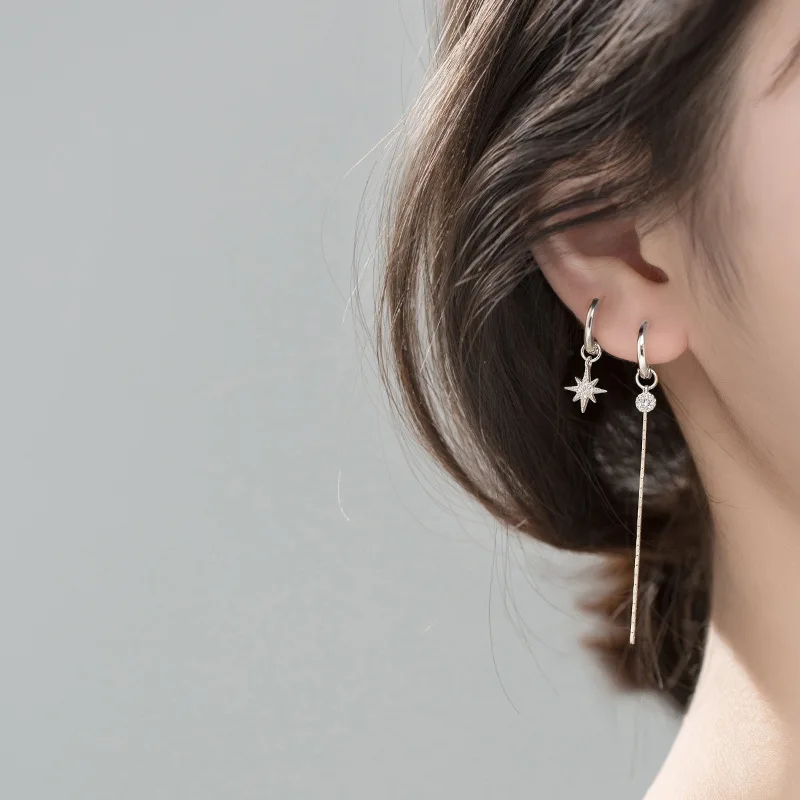 Асимметричные серьги из серебра 925 пробы с блестящей звездой, серь...