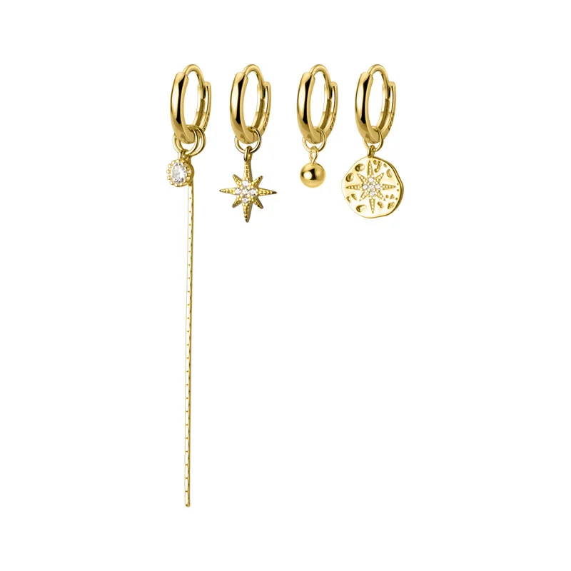 Женские асимметричные серьги-гвоздики со звездами и кисточками