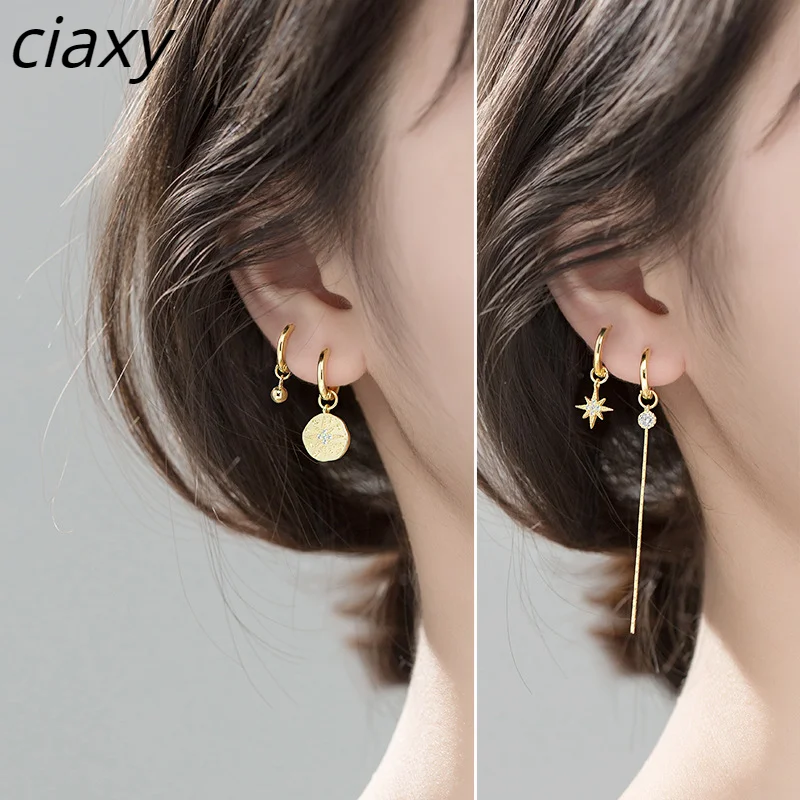 Женские асимметричные серьги CIAXY из стерлингового серебра 925 пробы с цирконием в стиле ретро