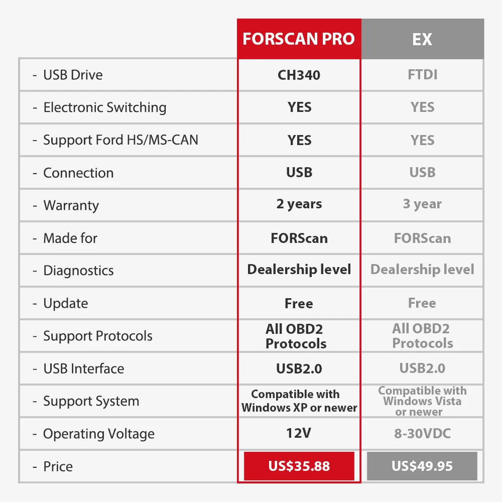 【Вопрос: Какая лицензия продлена, почему и когда мне это нужно?】О: Расширенная Лицензия обеспечивает доступ к функциям конфигурации и программирования FORScan elm327, а также к небольшим функциям обслуживания (например, программированию PATS). Функция Base FORScan elm327 (подключение, получение информации о транспортном средстве, параметры чтения, чтение и сброс диагностических кодов неисправностей, запуск тестов и сервисных функций и т. д.) не требует дополнительной лицензии. Кроме того, вы можете бесплатно 2 месяца расширенной лицензии, который может быть выпущен для тех, у кого учетной записью на FORScan elm327 официальный форум. Также есть платные долгосрочные и пожизненные лицензии. Более подробную информацию о расширенной лицензии можно найти на официальном сайте FORScan elm327.【В: почему FORScan elm327 не показывает функции для моего автомобиля? Когда эта функция будет добавлена?】О: функции могут быть очень разными для разных моделей и особенно для разных поколений моделей и разных брендов. Например, на данный момент существует 50 + известных версий процедуры ABS bleed для моделей Ford, только 10 + реализованы в FORScan elm327.Мы не добавляем функции только для удовольствия, так как количество функций огромное из-за нескольких версий. Поэтому мы добавляем функции по запросам. Больше запросов от пользователей на функцию-больше шансов добавить эту функцию в ближайшее время.【В: Как я могу получить расширенную лицензию после пробного периода?】О: на данный момент доступно только 2 месяца бесплатной расширенной лицензии. После истечения срока действия вы сможете оформить еще 2 месяца, а также бесплатно. Или вы можете купить долгосрочную (1, 3, 5 лет) или пожизненную расширенную лицензию.【В: переключатель зажигания автомобиля включен, он все еще показывает: Пожалуйста, включите и повторите попытку.】О: эта проблема заключается в том, что драйвер USB или FORScan elm327 не получают разрешения вашего компьютера, даже если он был установлен должным образом. Удалите usb-драйвер и программное обеспечение FORScan и установите его снова в качестве ADMINISTRATOR.