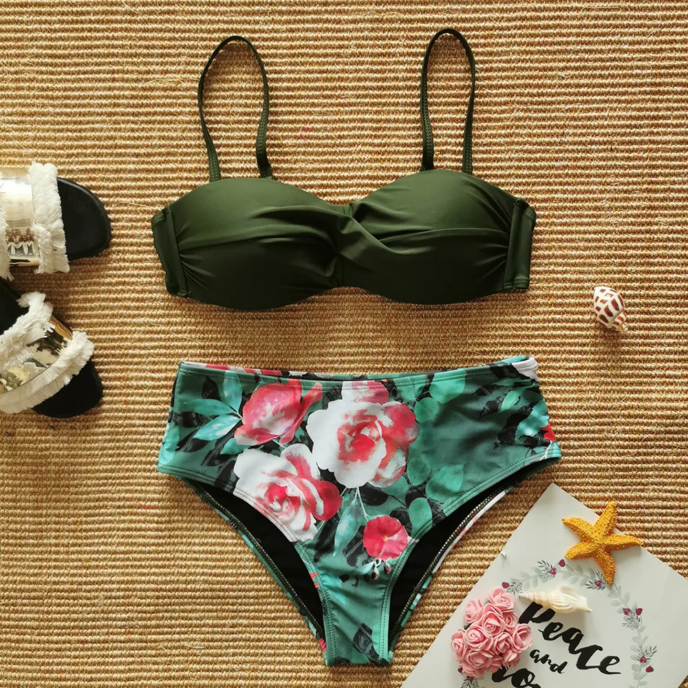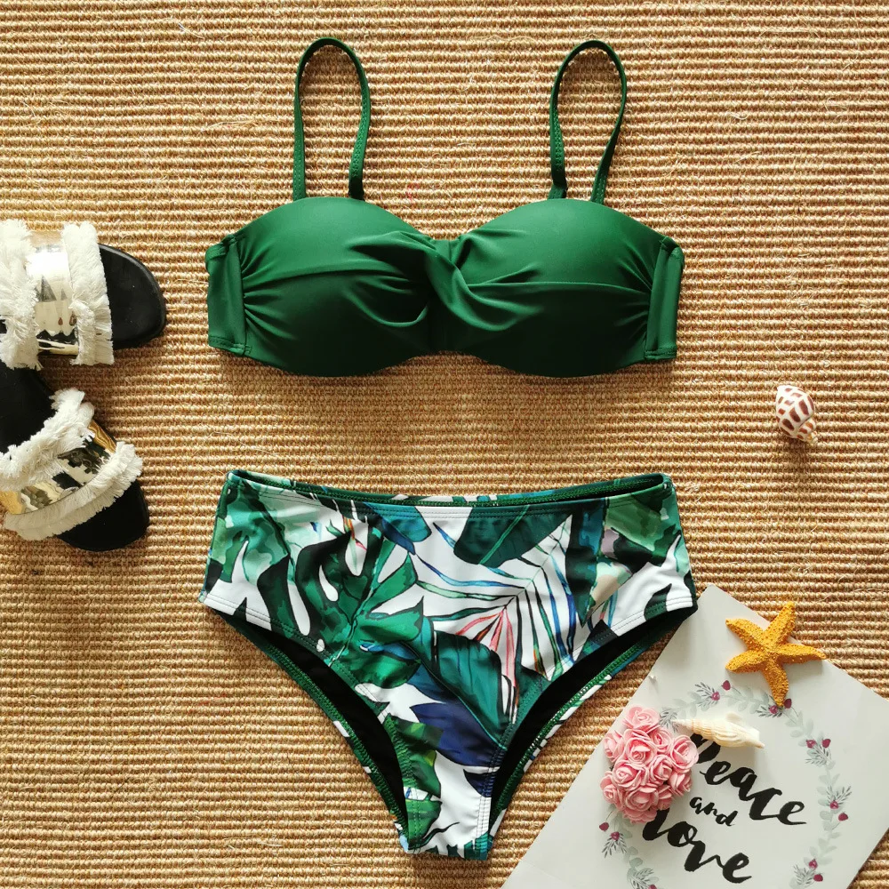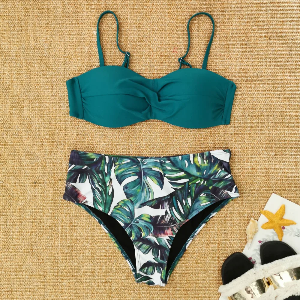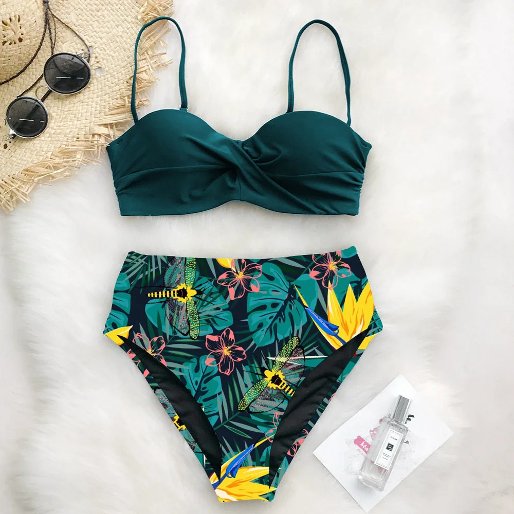 Новинка 2021, женский купальник, сексуальный купальник из двух частей, кружевное бикини с высокой талией и принтом, пляжный купальник с открытой спиной