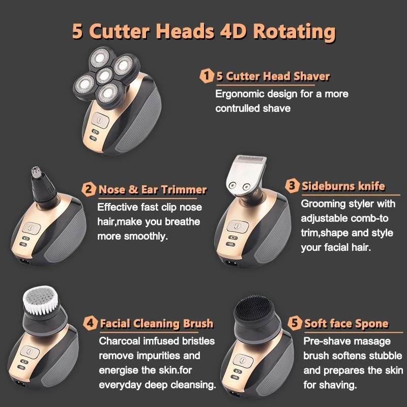 Электрическая бритва 5 in14D для лысающих мужчин, Влажная и сухая б...