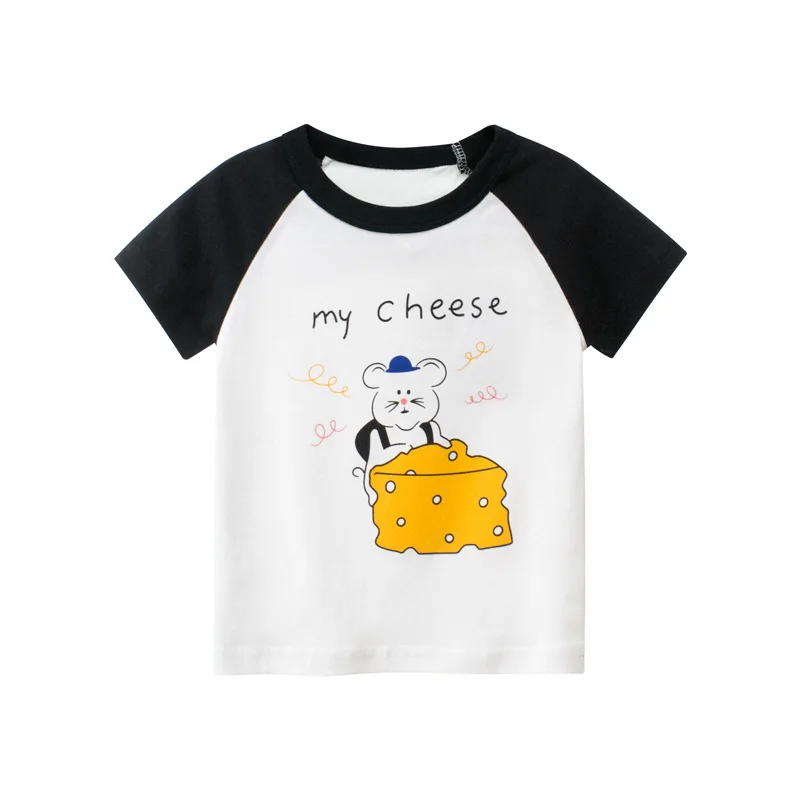 Футболка детская хлопковая с короткими рукавами и принтом в виде мультяшных животных