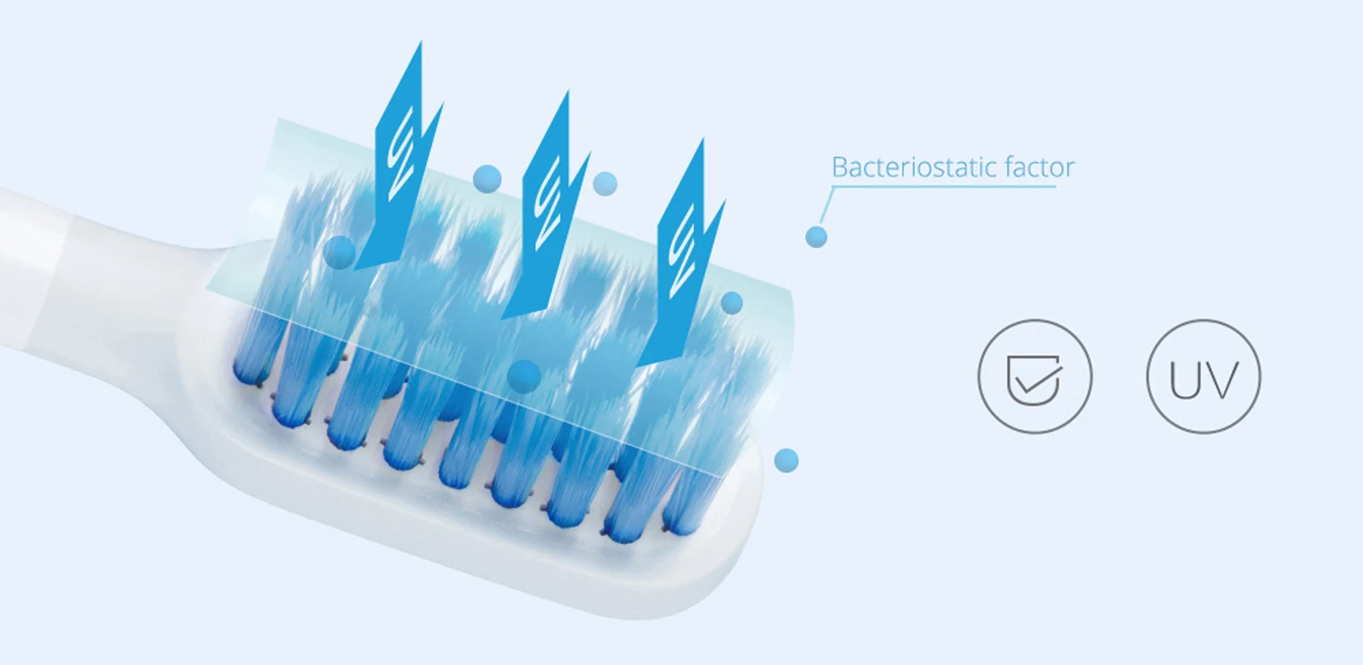 Американская щетина DuPont Premium. Выбирая американский DuPont Sta Clean 0,152 мм Премиум дезинфекционные щетинки, он имеет сертификацию FDA. Кроме того, Mi Home дезинфицирует головку кисти с помощью УФ-стерилизации и вакуумной посылка, чтобы гарантировать безопасность и чистоту каждой щетки. * Американская щетина DuPont * FDA безопасный сертификат * UV ster вакуумная посылка