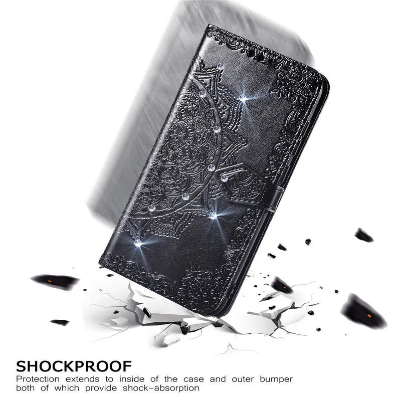 [Стиль]: 3D тисненая МандалаРоскошный флип-чехол для телефона с бриллиантами