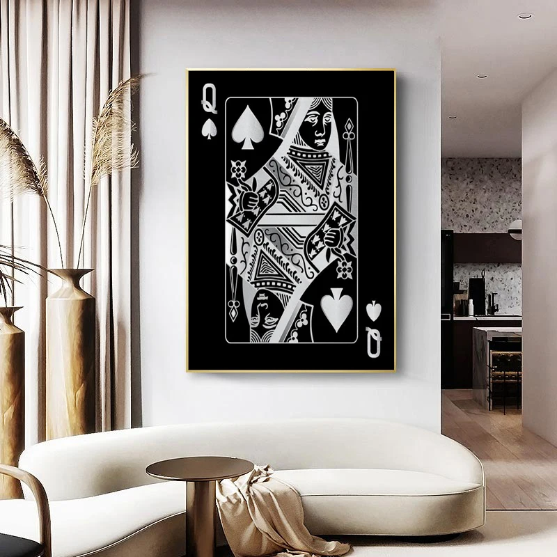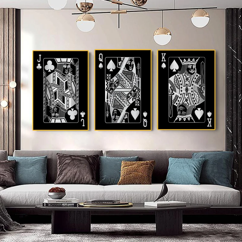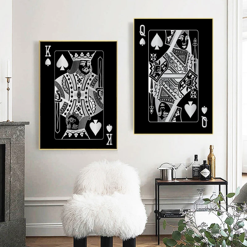 Абстрактная Серебряная Картина на холсте с игральными картами Король Королева настенные постеры и принты настенные картины для декора клуба бара