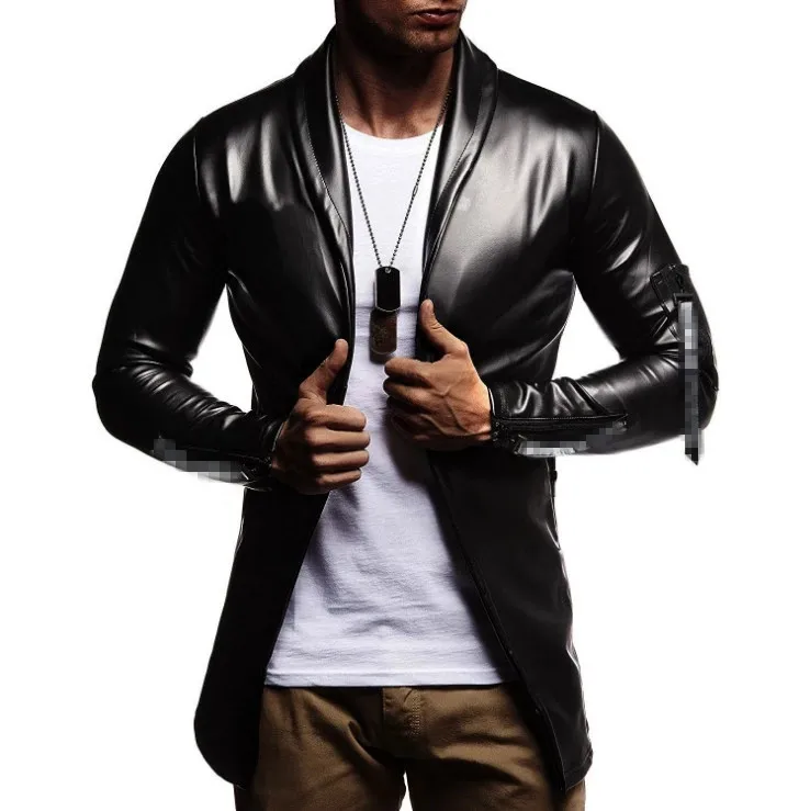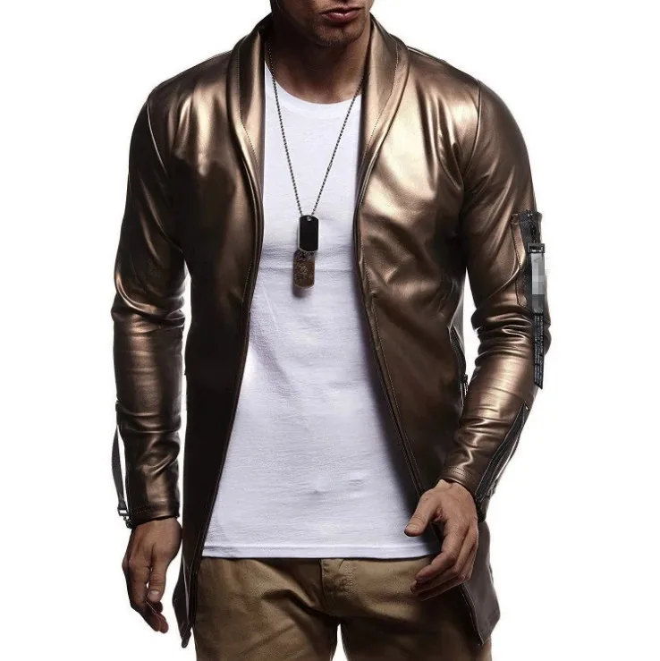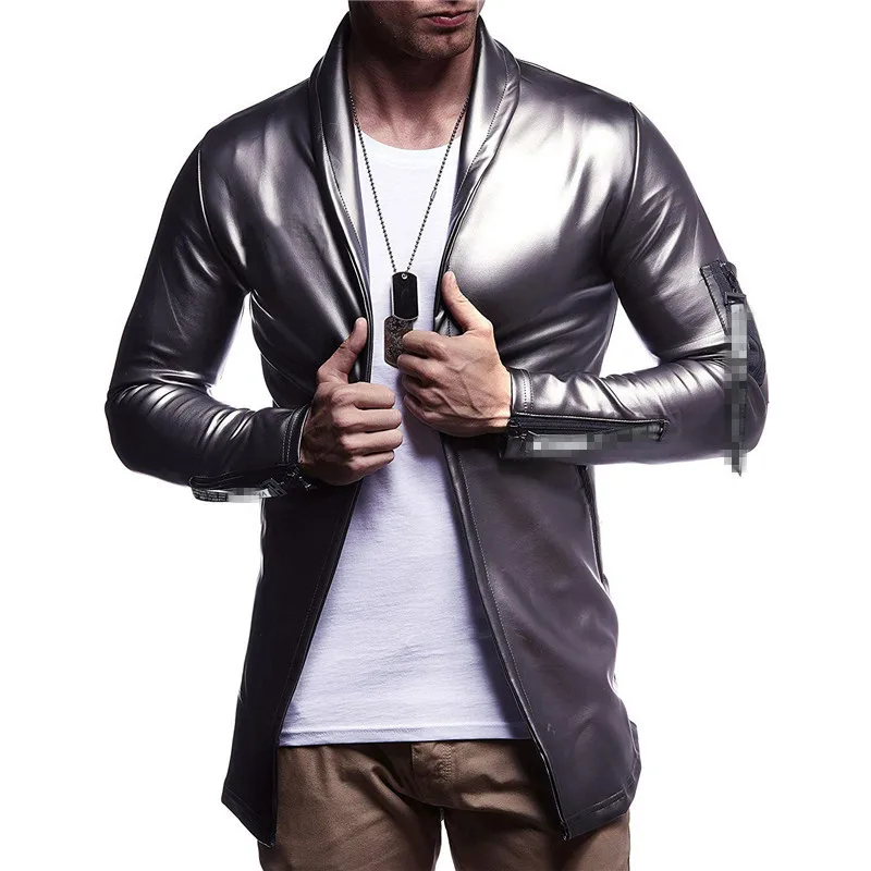 Мужская кожаная куртка для ночного клуба, Новая Модная приталенная мотоциклетная кожаная куртка, золотистыйсеребристый Блейзер, Мужское пальто из искусственной кожи