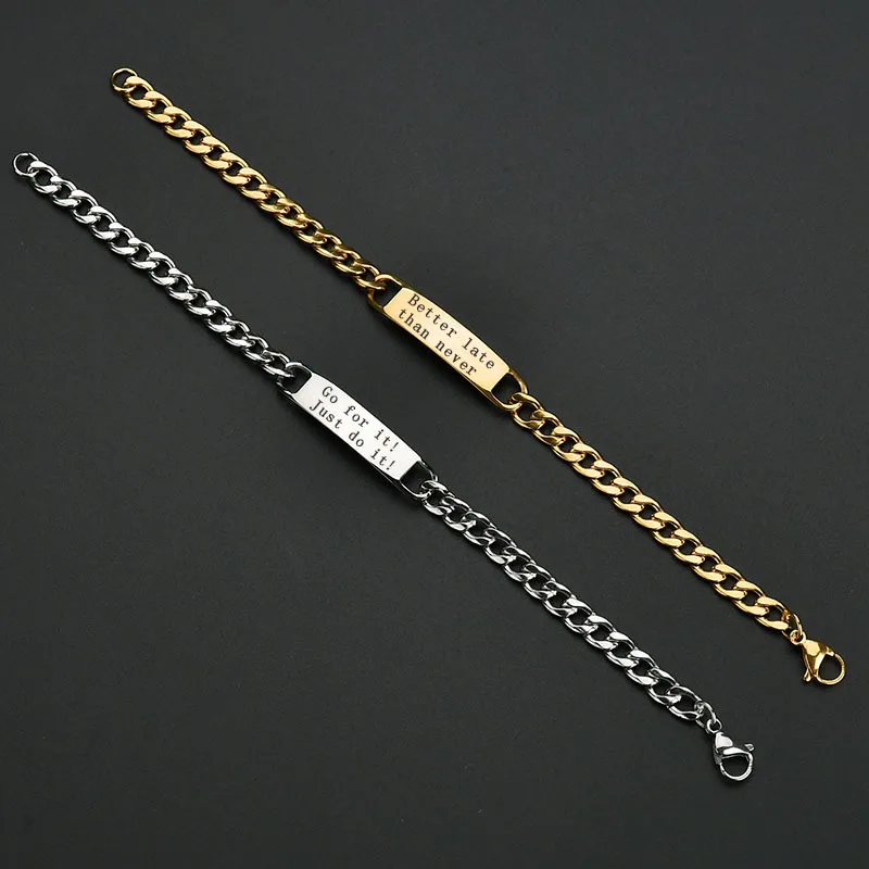 Женские и мужские браслеты в стиле панк, с гравировкой имени, из нержавеющей стали, в стиле хип-хоп, кубинские браслеты, персонализированные ювелирные изделия