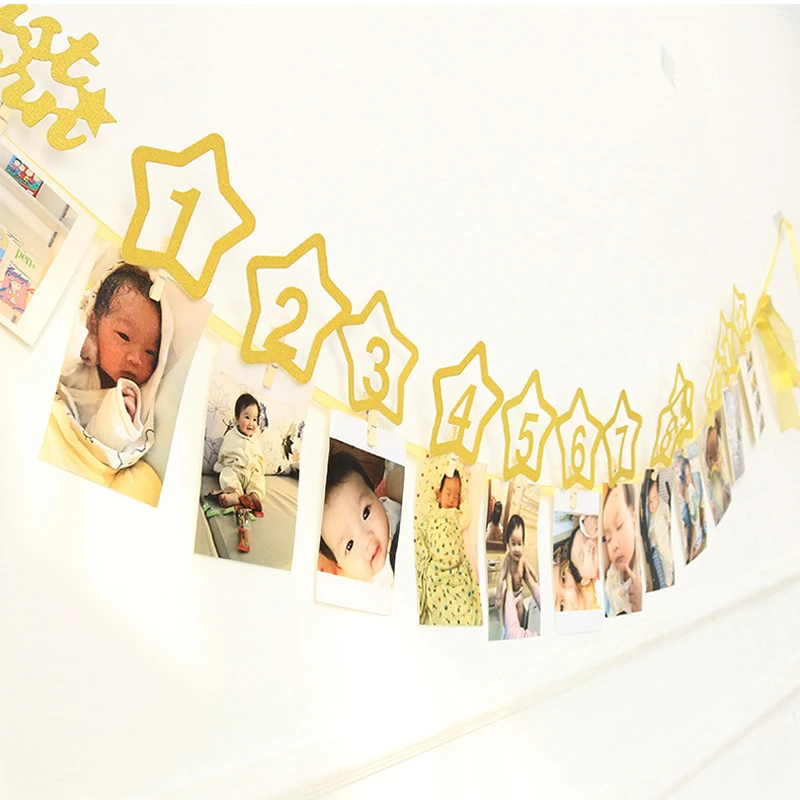 12 месяцы фоторамка Бумага баннер первый С Днем Рождения Декор 1st ...