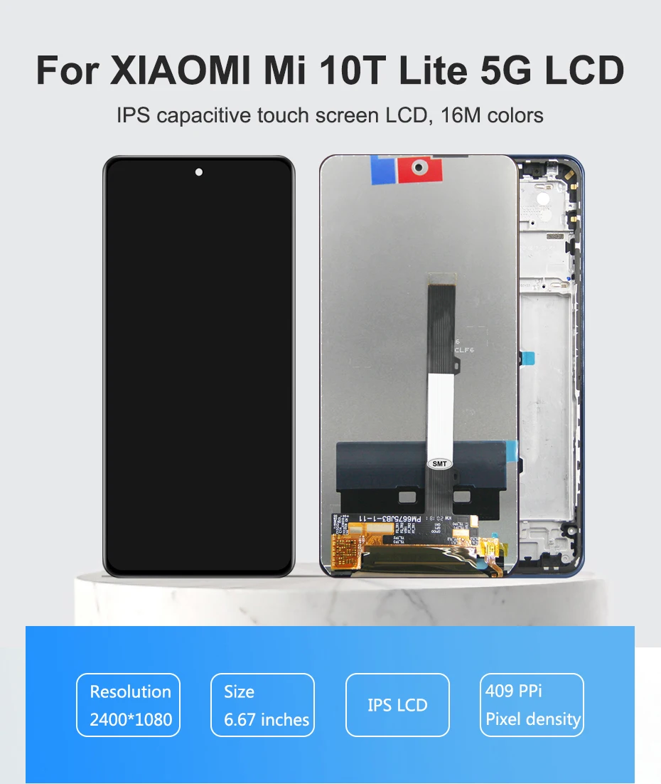 Оригинальный дисплей 6,67 ''для Xiaomi Mi 10T Lite 5G, ЖК-дисплей, сенсорный экран, дигитайзер в сборе для Xiaomi Mi 10T Lite 5G, ЖК-дисплей