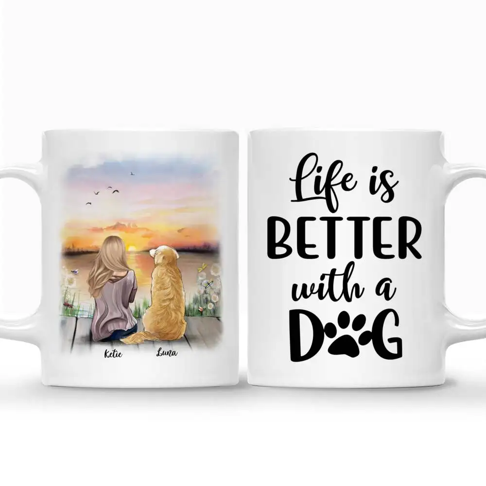 Персонализированные кружки, кофейная кружка для влюбленных девочек и собак, чашка, подарок для домашних животных, сделай сам, жизнь на заказ, лучше с собакой, 1115 унции RR2022