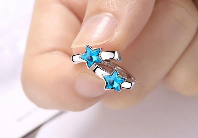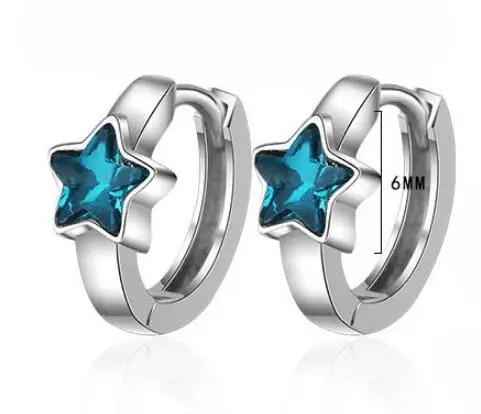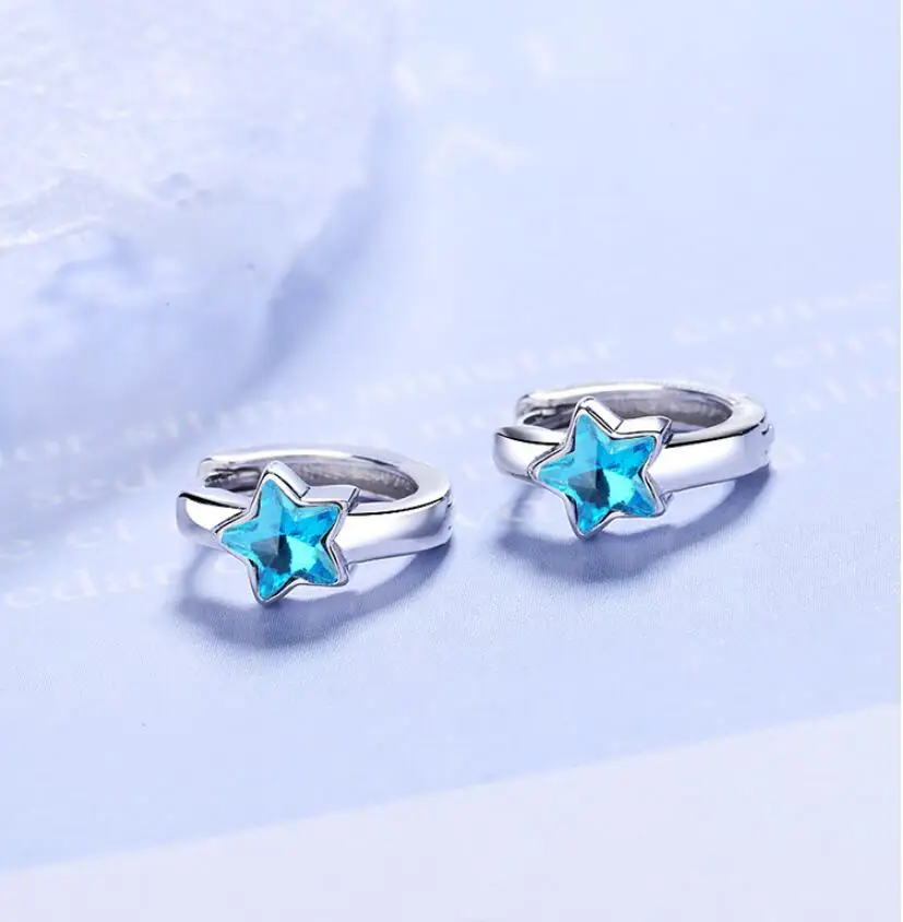 Cute Blue Crystal Stars 925 Sterling Silver Circles Small Loops Hug...