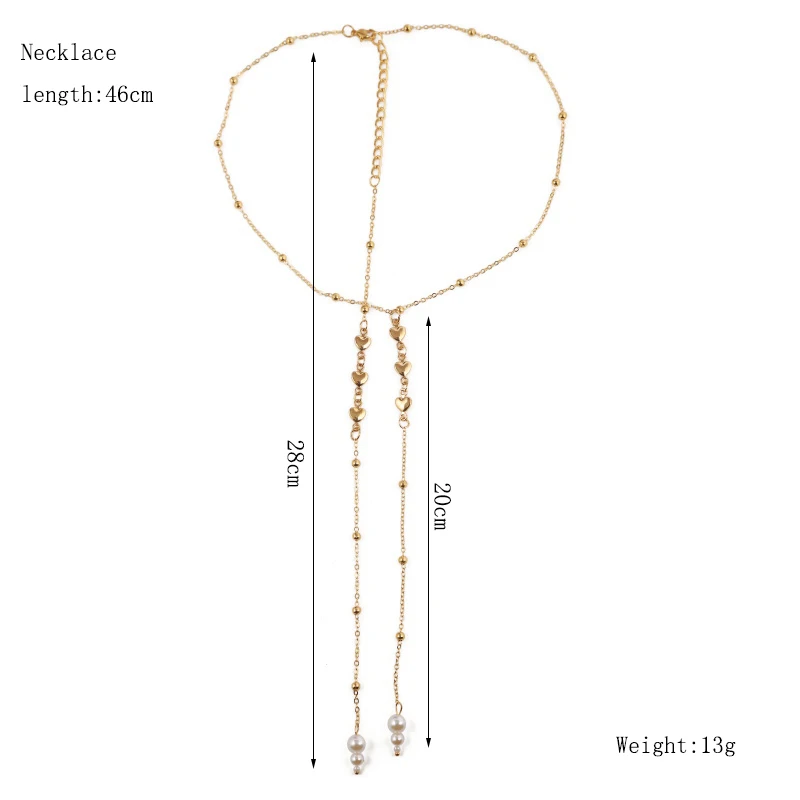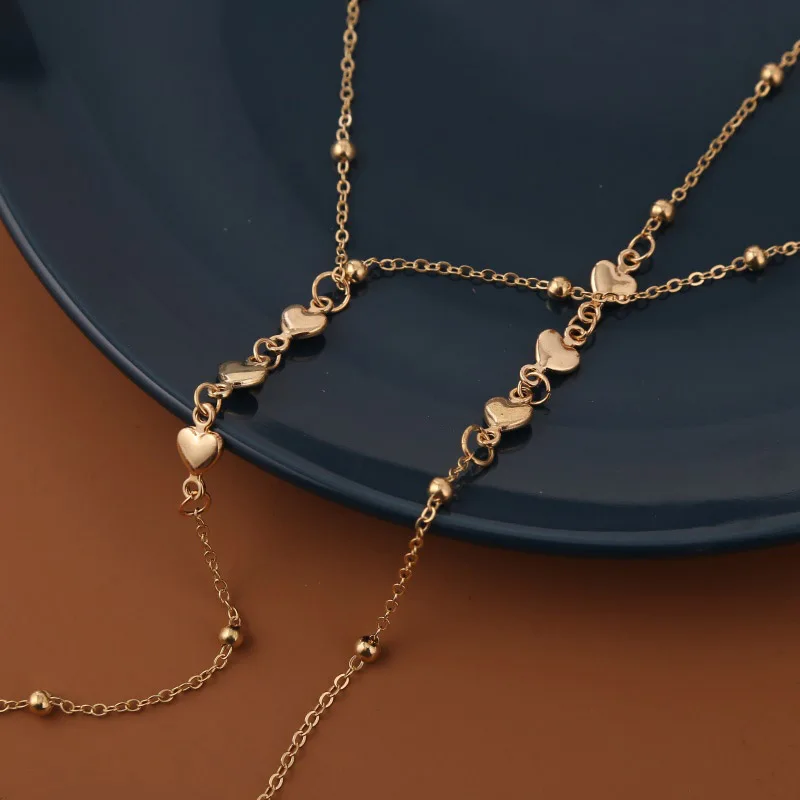 Цепочка золотистая женская с подвесками-сердечками, длинная цепочка с металлическими бусинами, милое ожерелье для вечеринок, Подарочная бижутерия