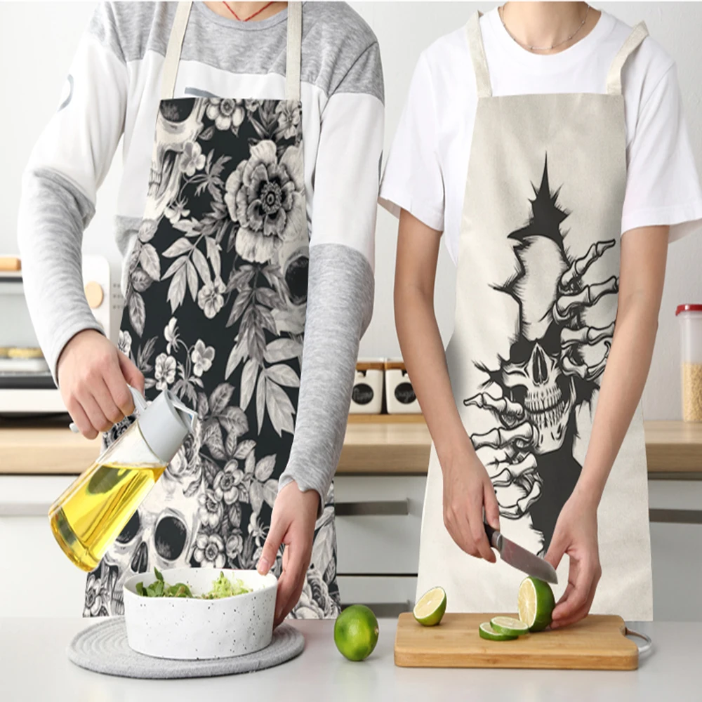 Фартук унисекс с черным черепом и косточками, кухонный нагрудник с художественным принтом для приготовления пищи и садоводства