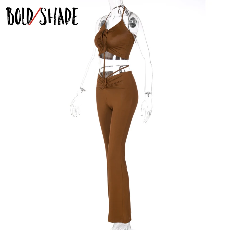 Комплект женский однотонный с V-образным вырезом и завышенной талией, в городском стиле