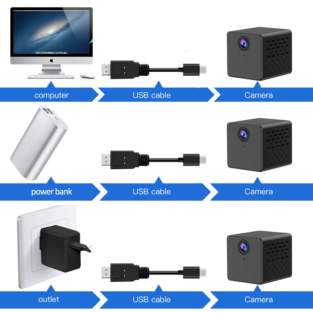 De camera-интерфейс ingebouwde USB opladen. Het kan worden opgeladen door de computer, power bank, en socket plug.